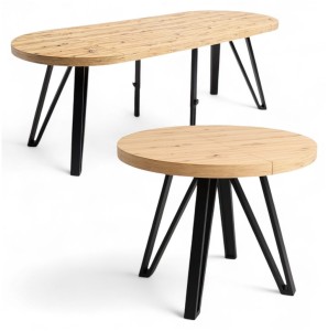 Stół okrągły Dąb Artisan Ø100 rozkładany do 300 cm Nogi Czarny Metal IND