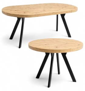 - Stół jest rozkładany, a w zestawie znajdziesz dwie wkładki