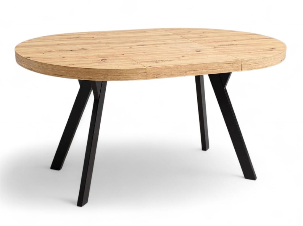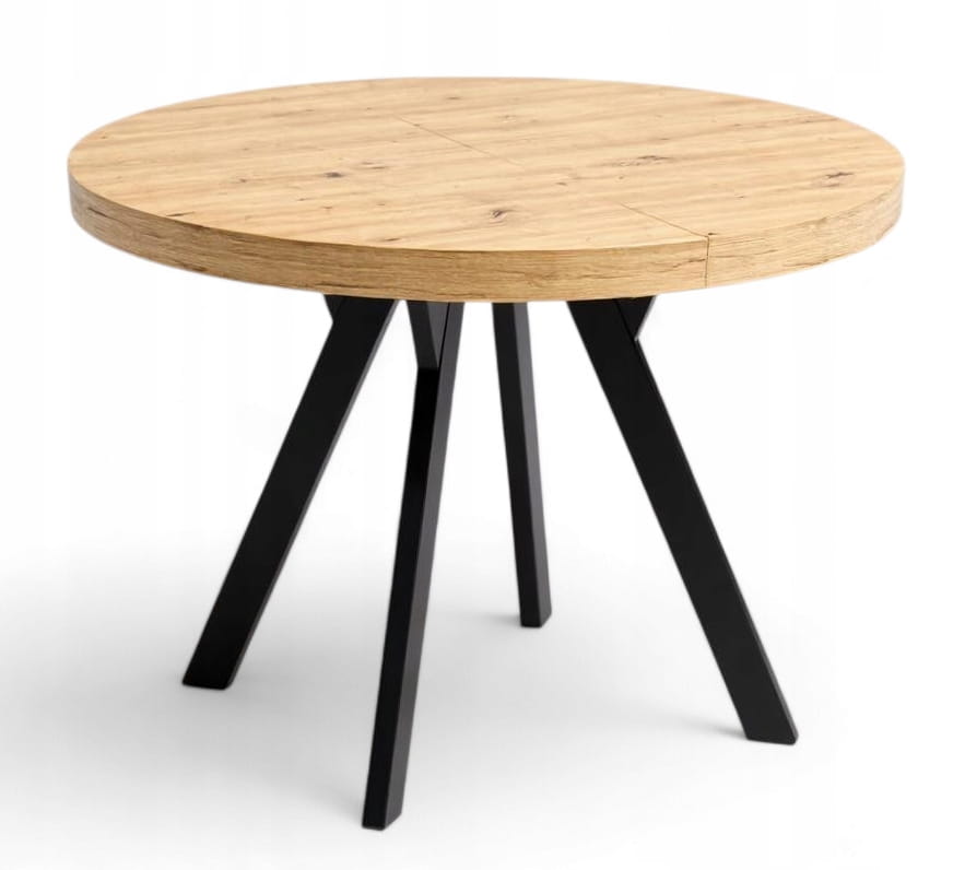 Stół okrągły Dąb Artisan Ø90 rozkładany do 190 cm Nogi Czarny Metal Y