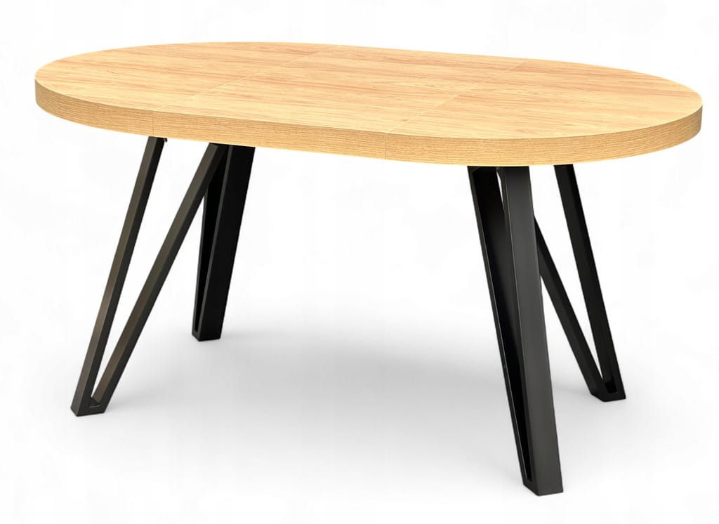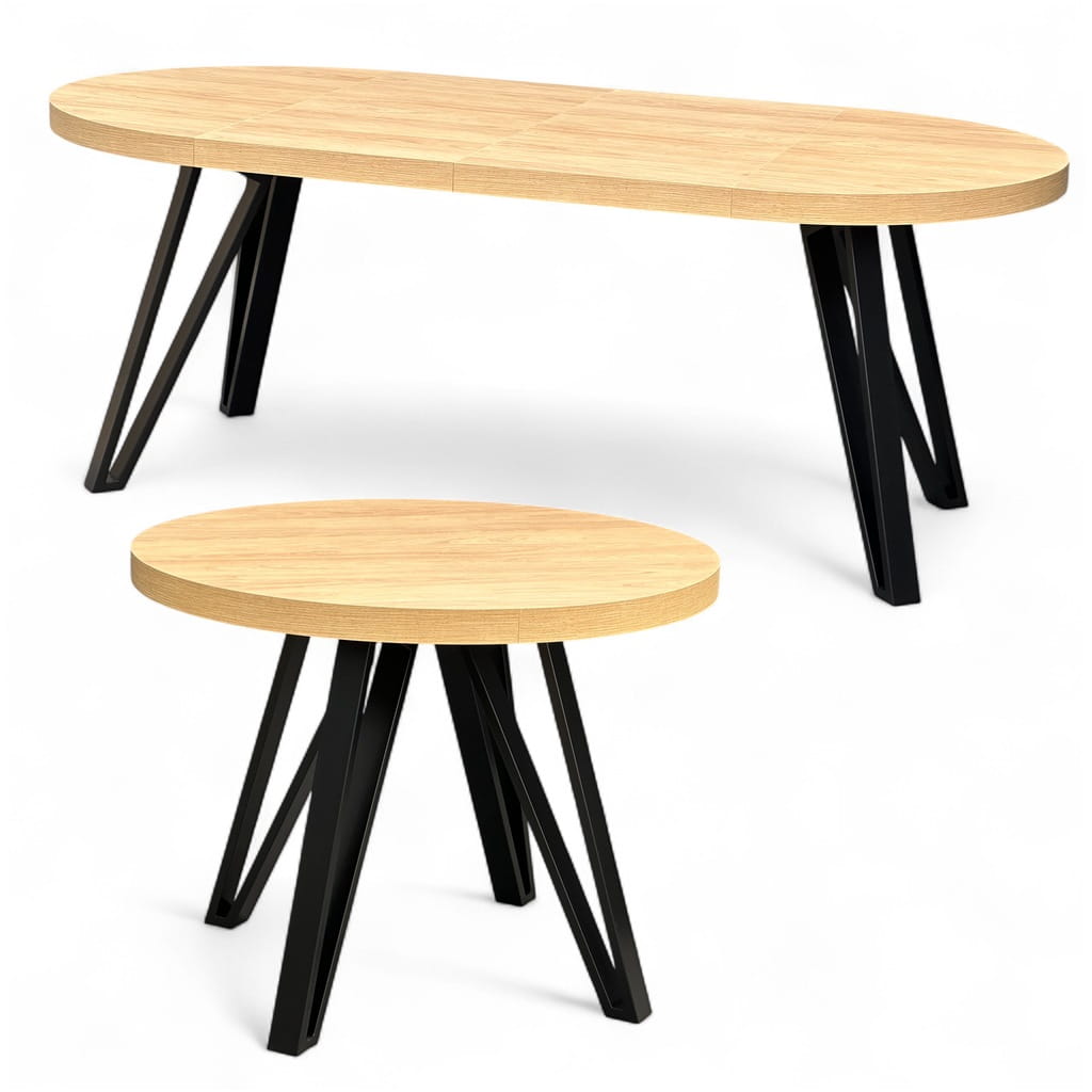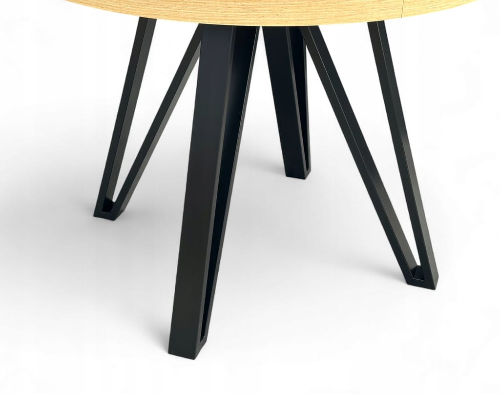Stół okrągły Dąb HIKORA EGGER Ø100 rozkładany do 200 cm Nogi Czarny Metal
