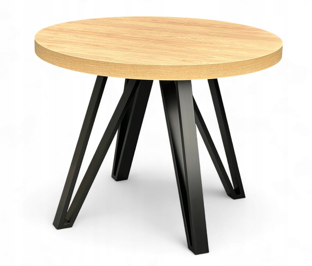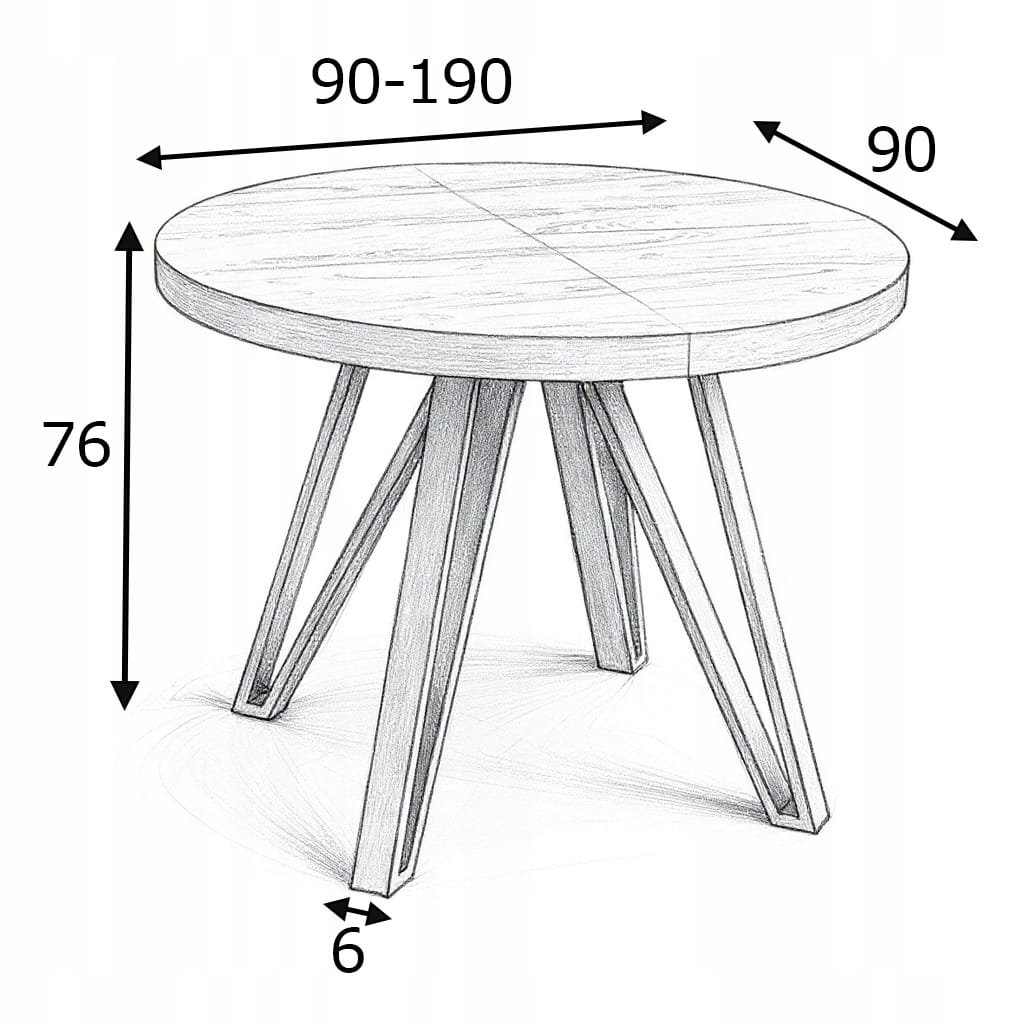 Stół okrągły Dąb HIKORA EGGER Ø90 rozkładany do 190 cm Nogi Czarny Metal