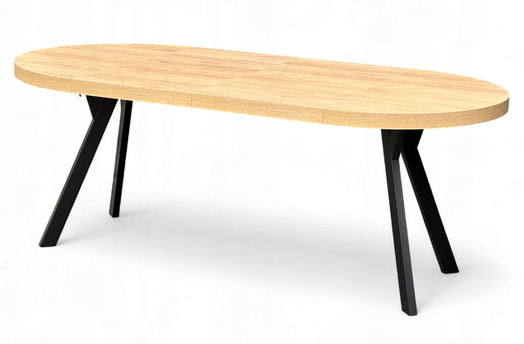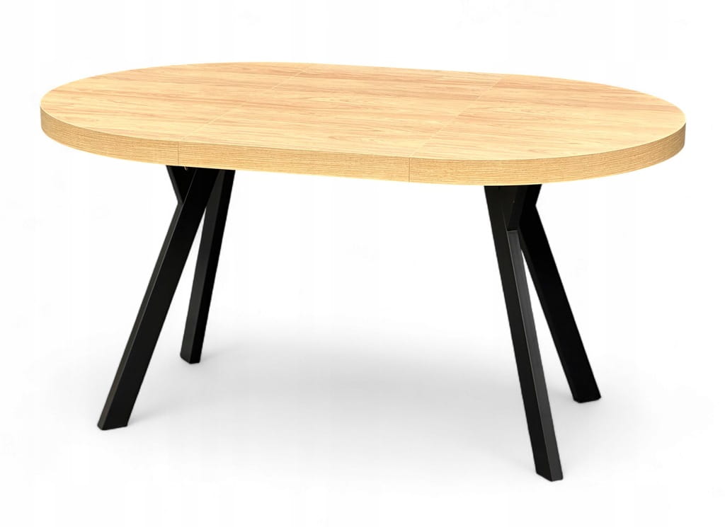 Stół okrągły Dąb Hikora Egger Ø100 rozkładany do 200 cm Nogi Czarny Metal Y
