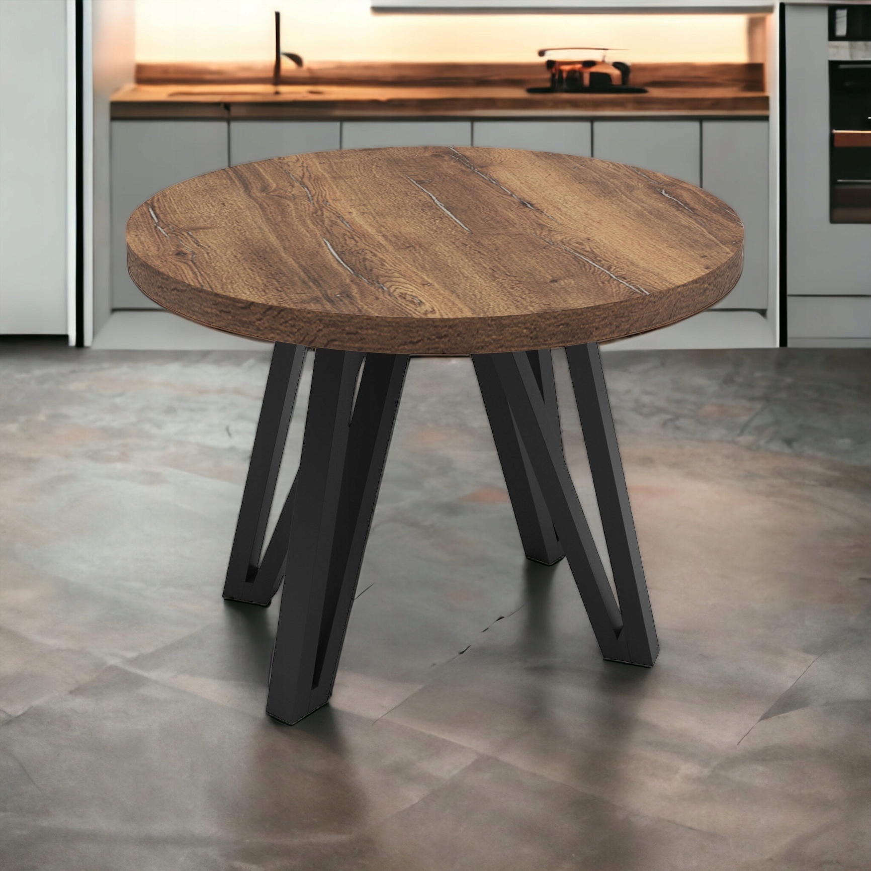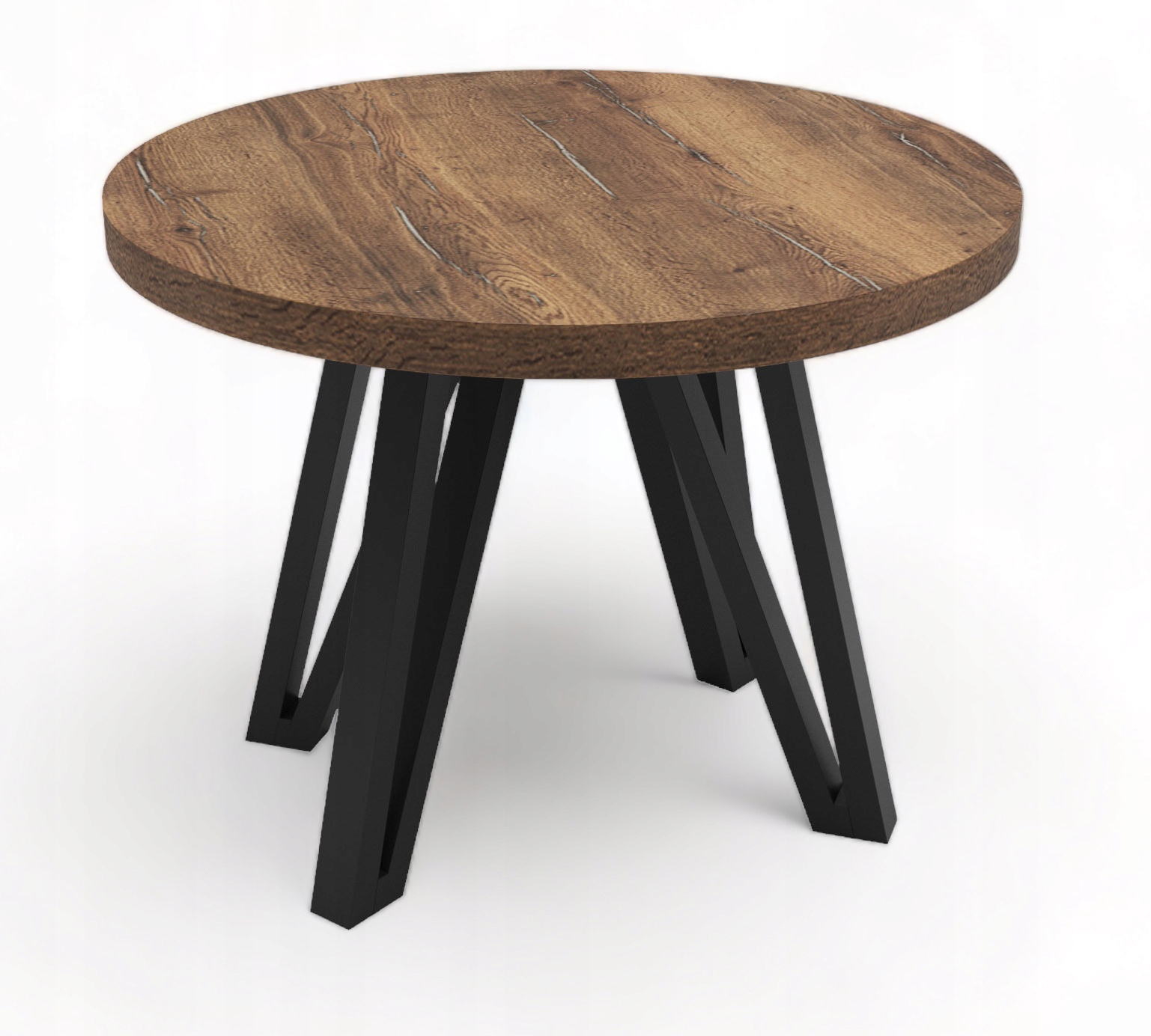 Stół okrągły METAL DĄB HALIFAX CYNOWANY Ø90/190 cm + nogi metalowe industrial