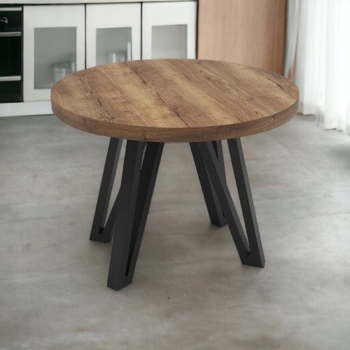 Stół okrągły METAL HALIFAX TABAK rozsuwany Ø90/190 + nogi metalowe industrial