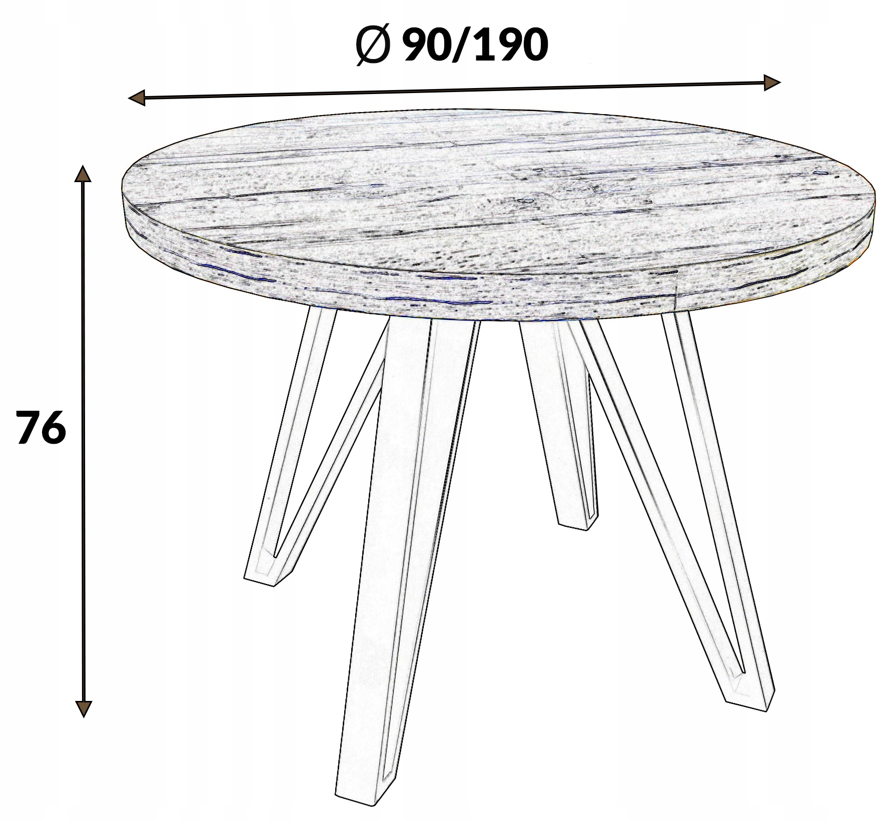 Stół okrągły METAL SHERMAN KONIAK rozsuwany Ø90/190 + nogi metalowe industrial