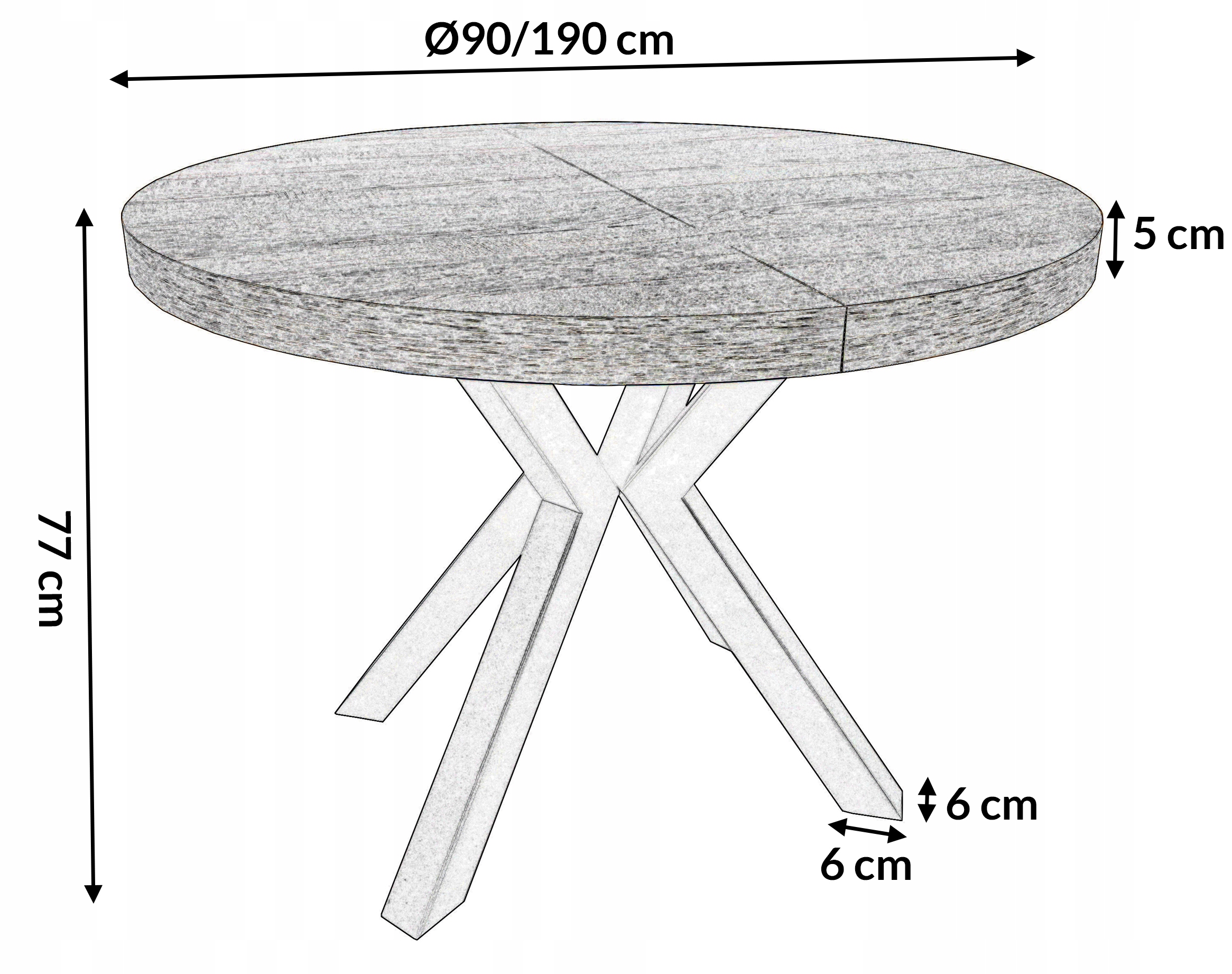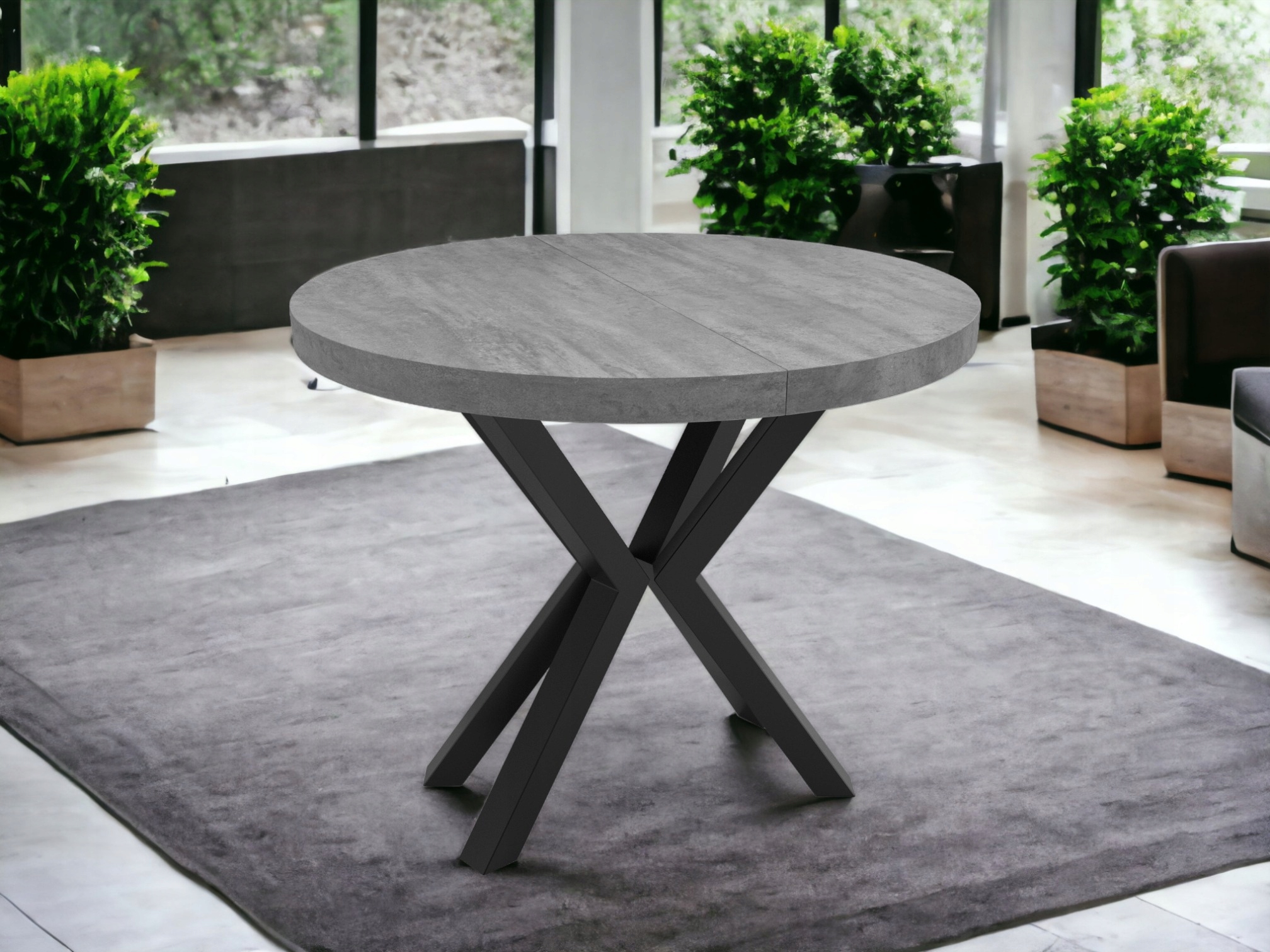 Stół rozkładany Metal X Ø90/190 cm do salonu lub jadalni