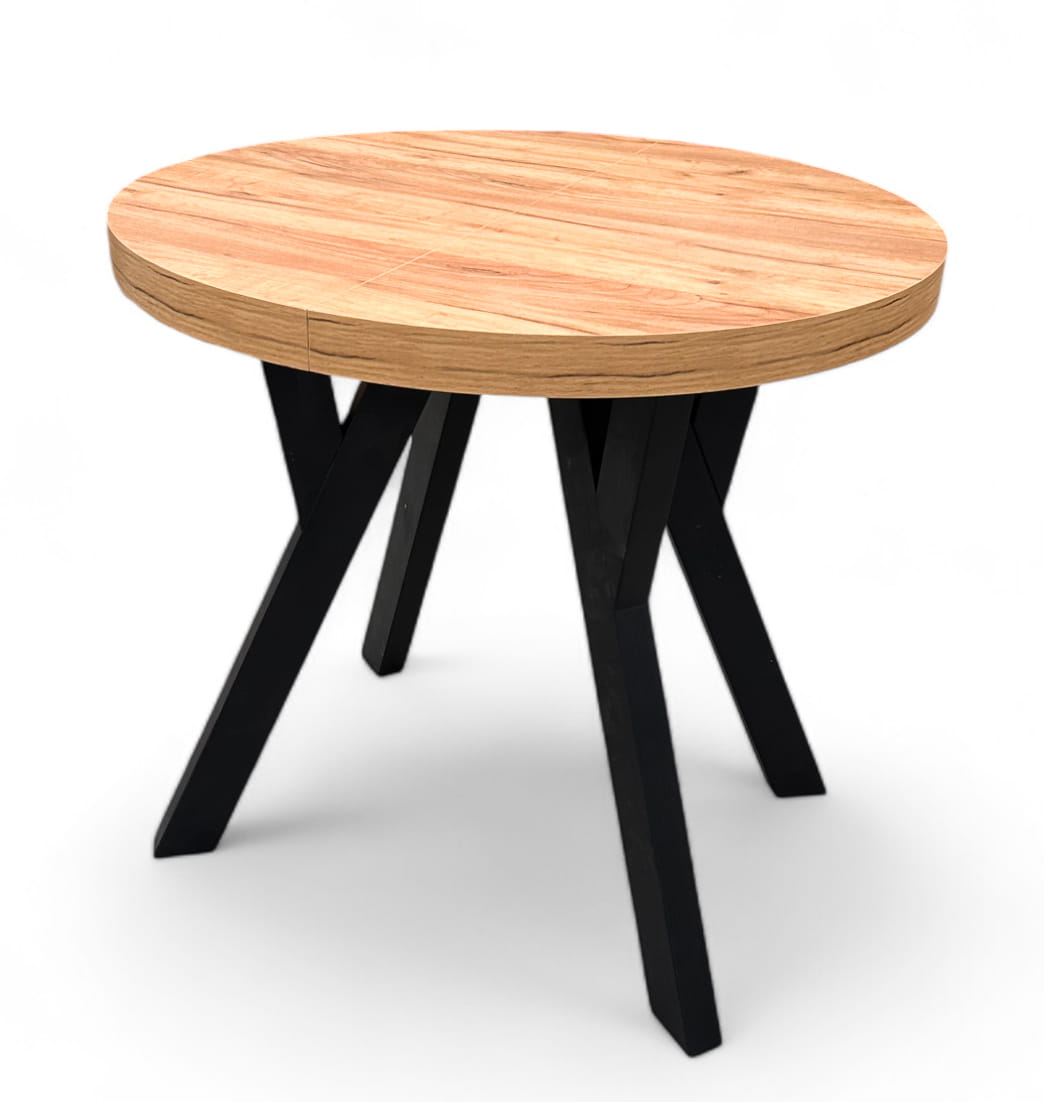Stół okrągły mały Ø80 cm rozkładany do 130 cm Czarny + Dąb Craft na 6 osób