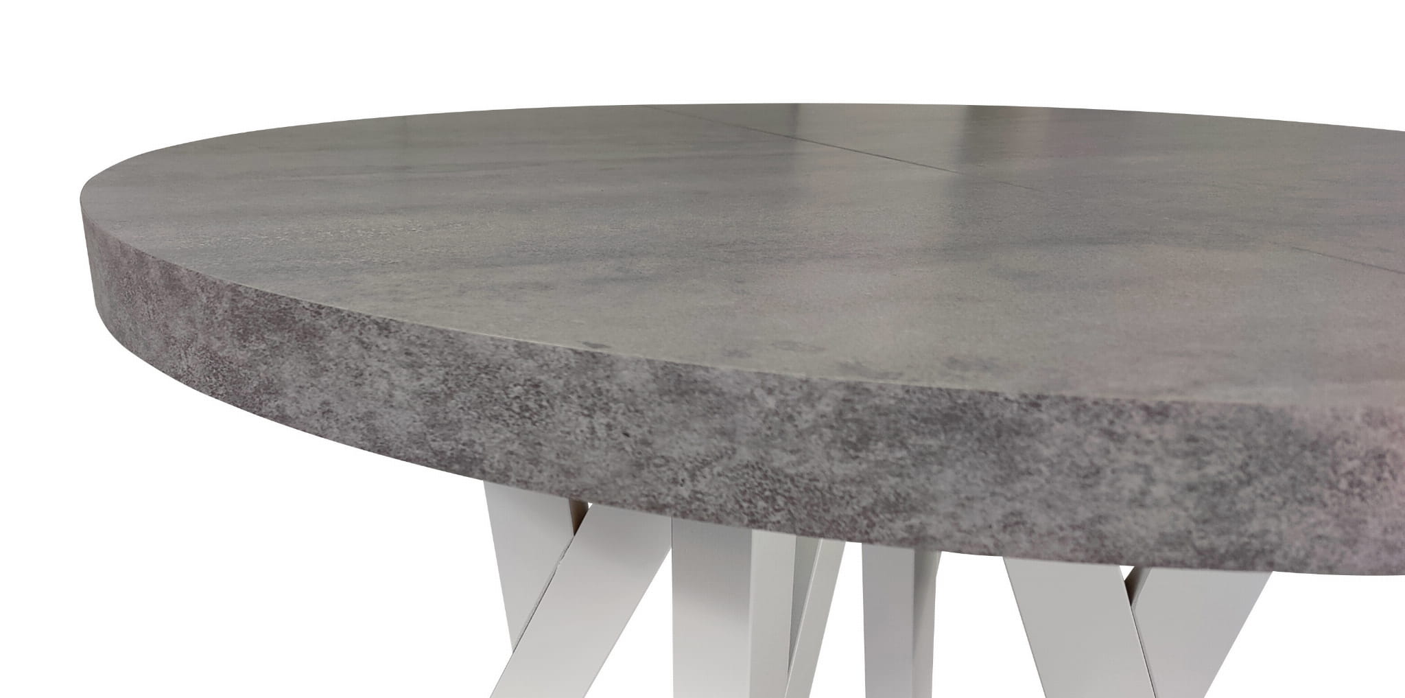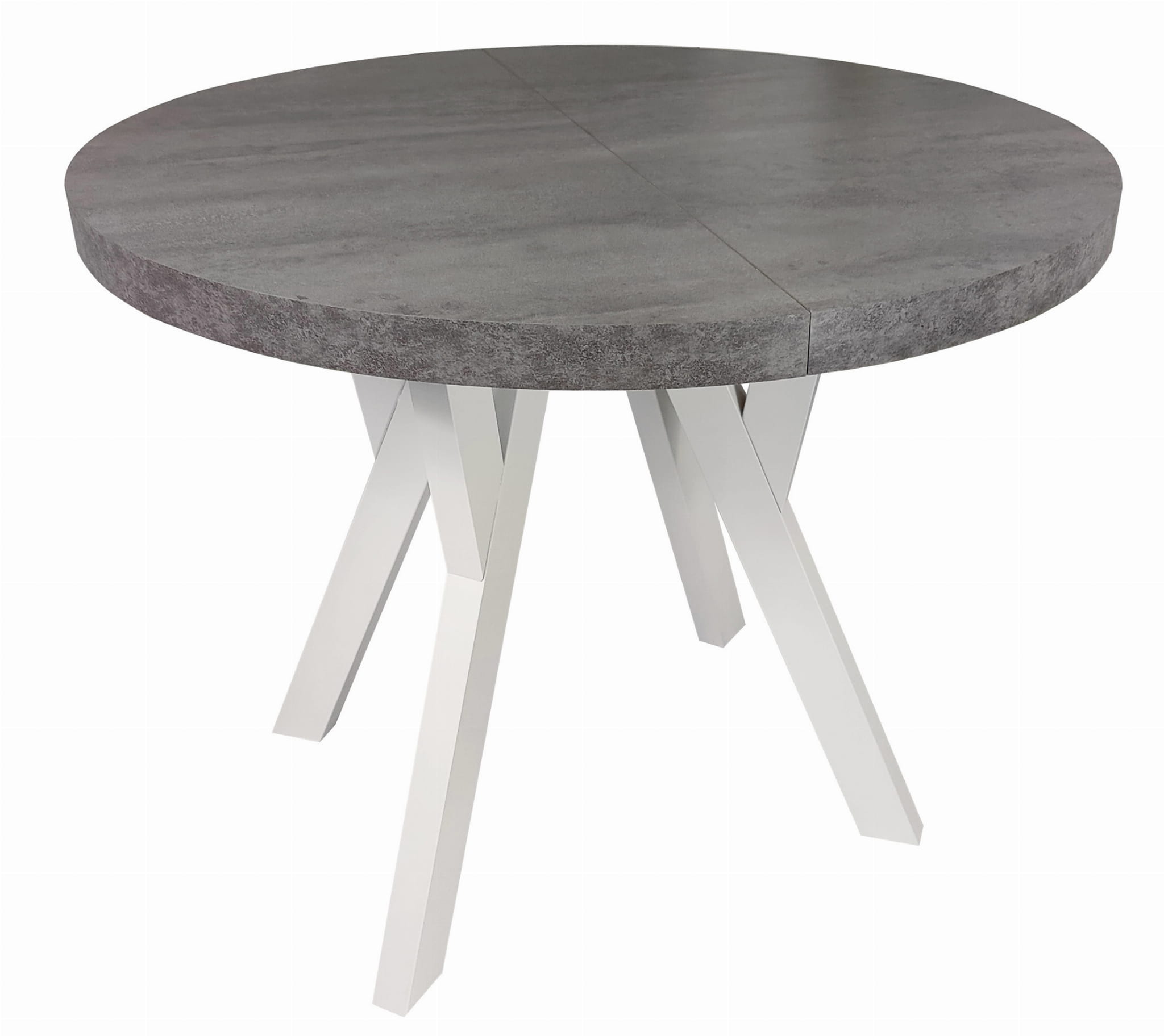 Stół okrągły rozkładany Ø 100/200 beton jasny + białe nogi