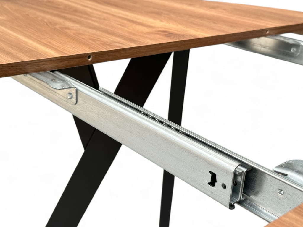 Stół rozkładany na prowadnicach łożyskowych.