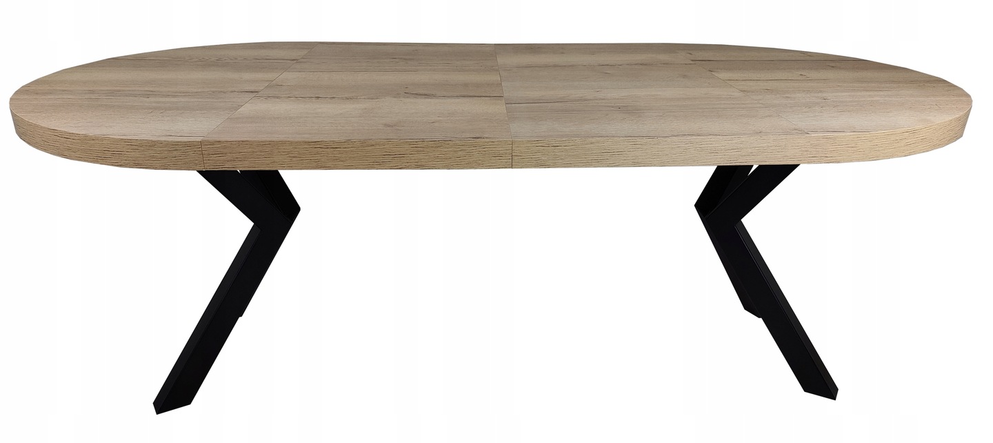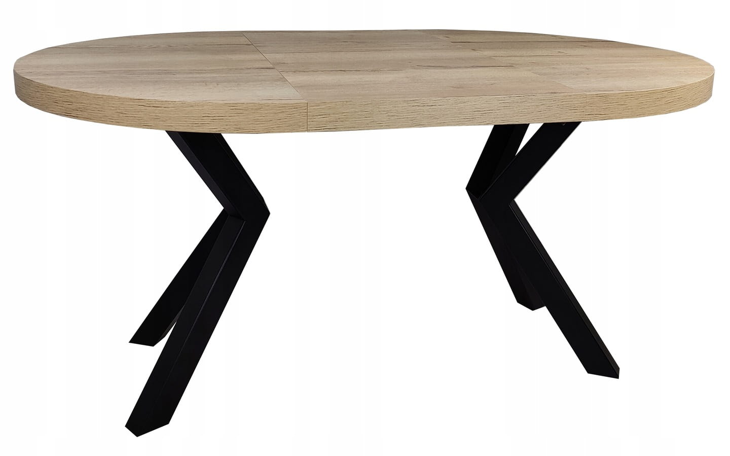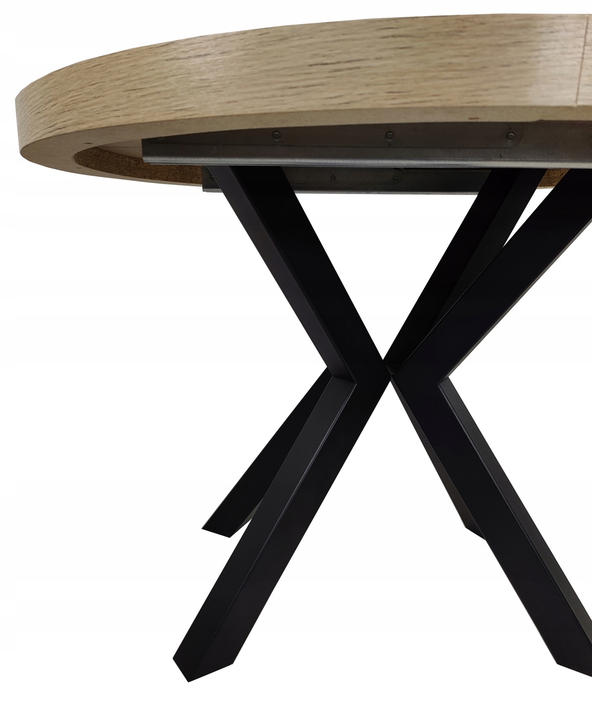 Stół okrągły rozkładany Ø 100/200 dąb halifax egger + czarne nogi metal X