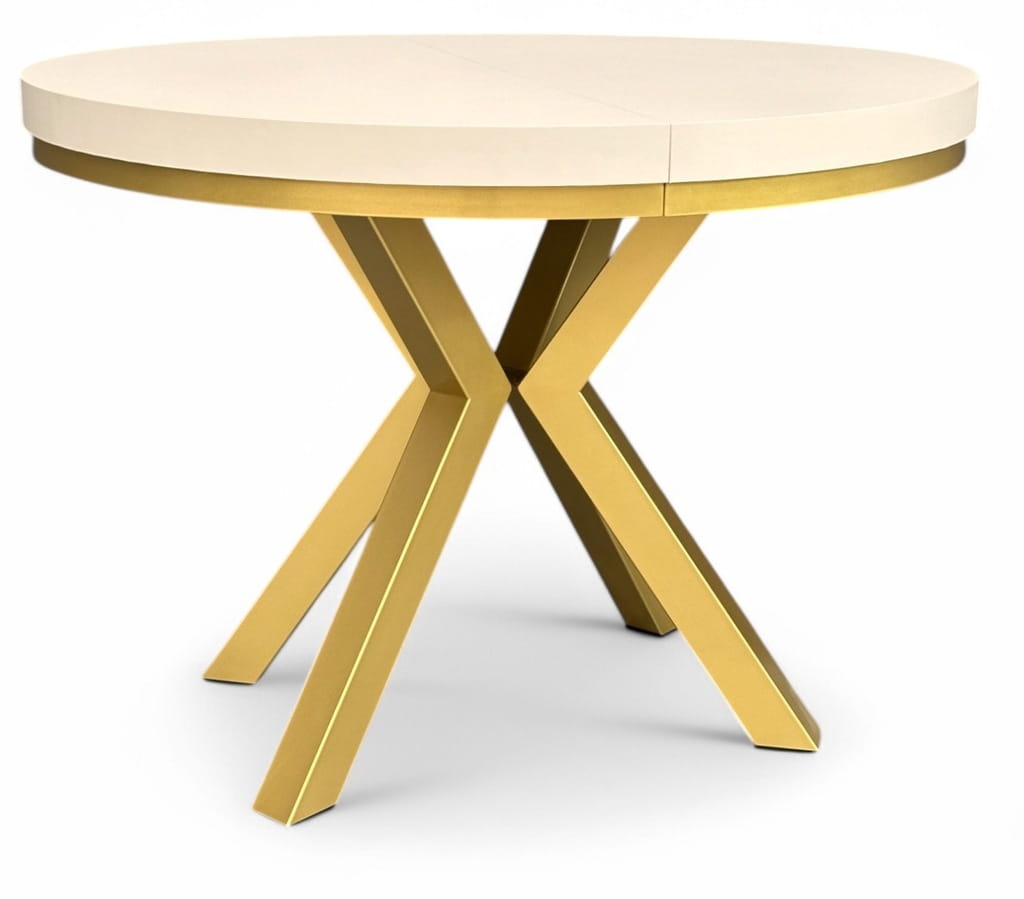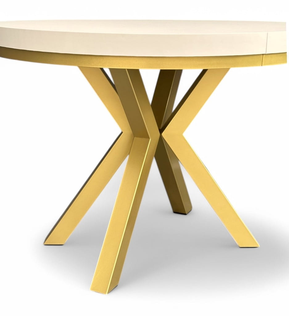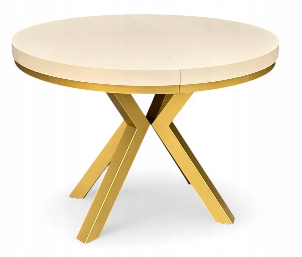 Stół okrągły rozkładany 100/300 cm KASZMIR + nogi złote X + maskownica