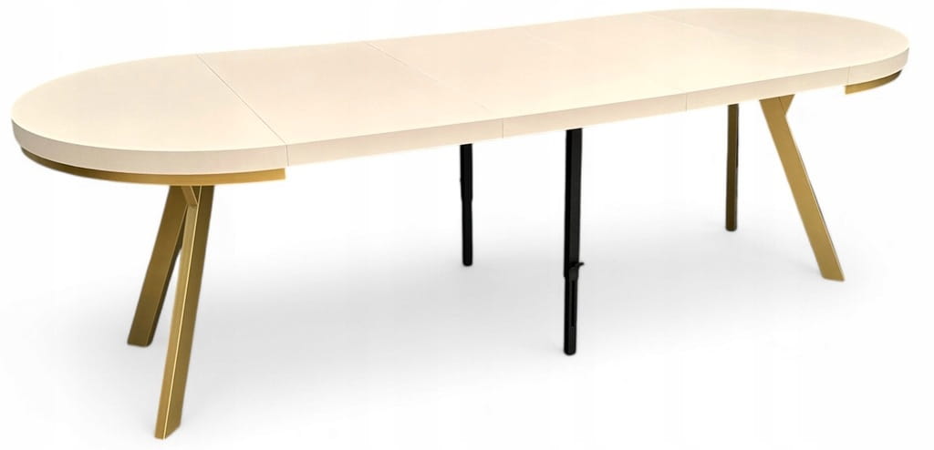 Stół okrągły rozkładany 100/300 cm Kaszmir + złote NOGI +maskownica