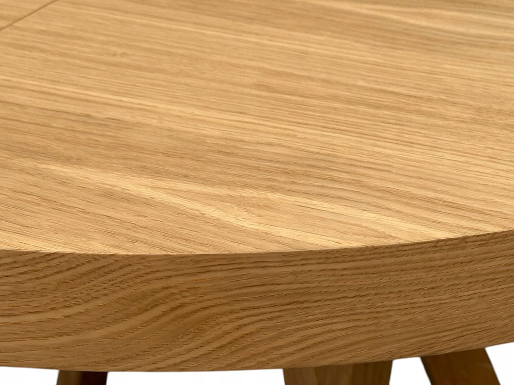 - Fornir dębowy to cienka warstwa prawdziwego drewna, dlatego blat zachowuje autentyczny wygląd dębu – z widocznym usłojeniem, ciepłym kolorem i naturalną fakturą.