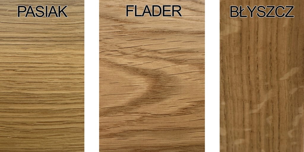 Meble dębowe wyróżniają się naturalnym, unikatowym usłojeniem, które może przybierać formy pasiak, błyszcz lub flader. Ponieważ jest to cecha w pełni naturalna, nie mamy wpływu na to, które z nich pojawi się na Twoich meblach. Dzięki temu każdy mebel ma swój niepowtarzalny charakter, a Ty zyskujesz jedyny w swoim rodzaju element wyposażenia wnętrza.