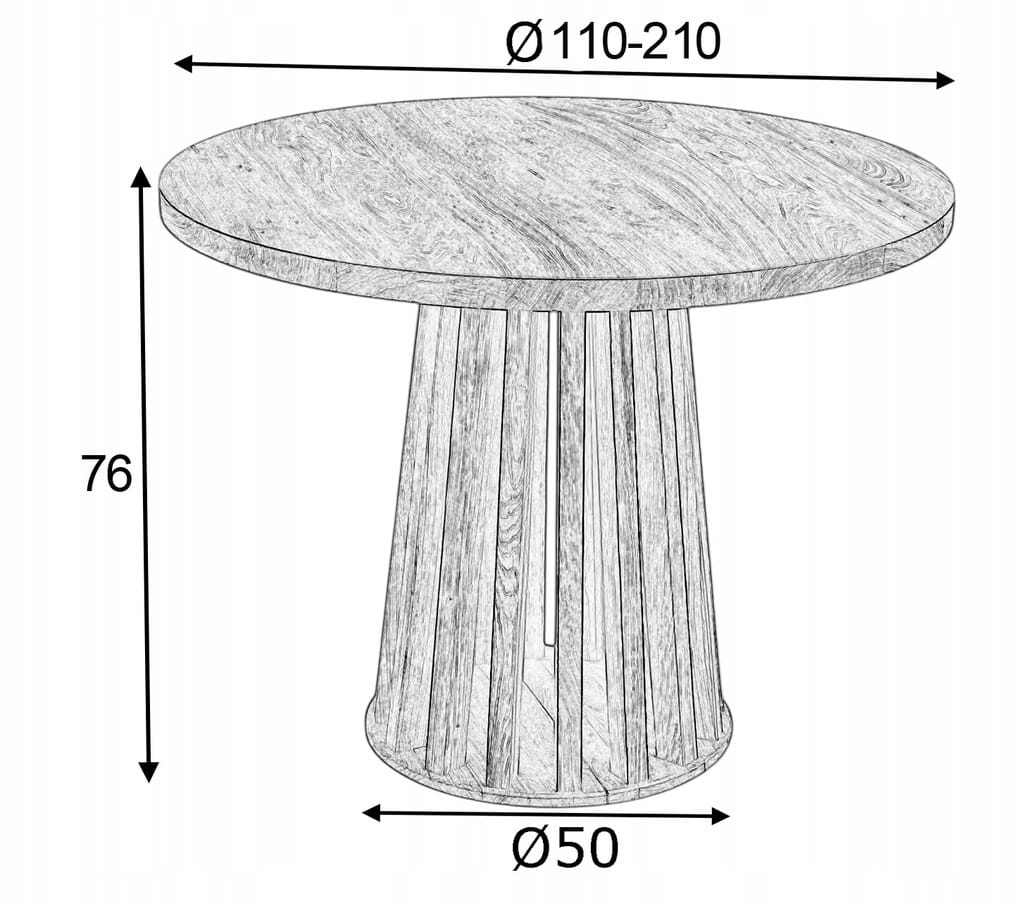 Stół okrągły rozkładany Ø110/210 FORNIR + podstawa lamel dąb dębowy