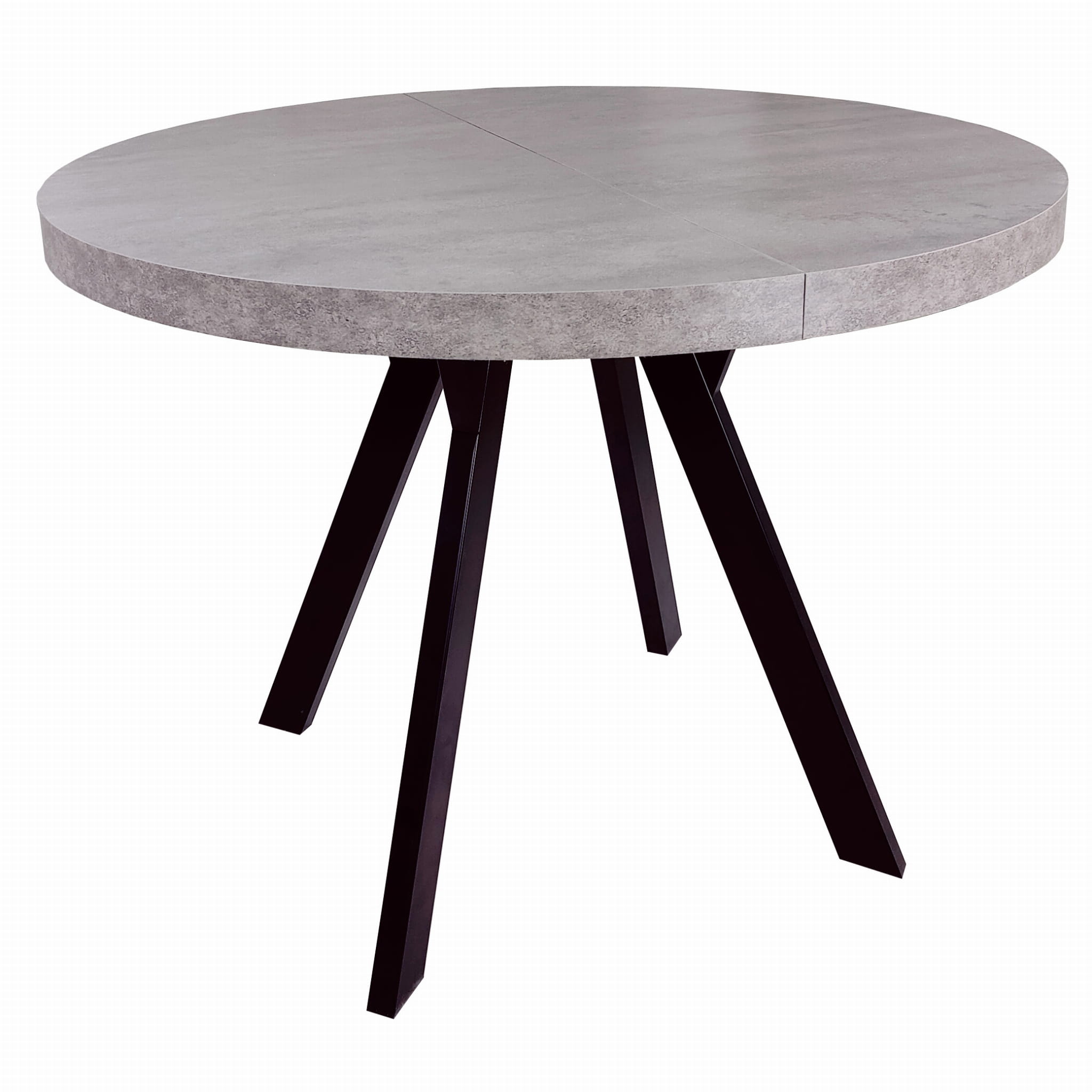 Stół okrągły rozkładany Ø 110/210 beton jasny + czarne nogi metal Y