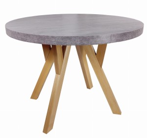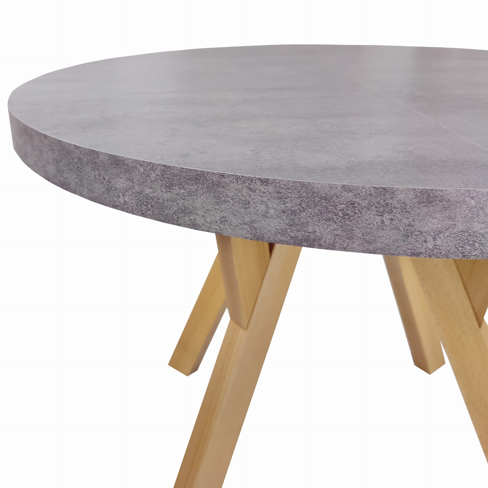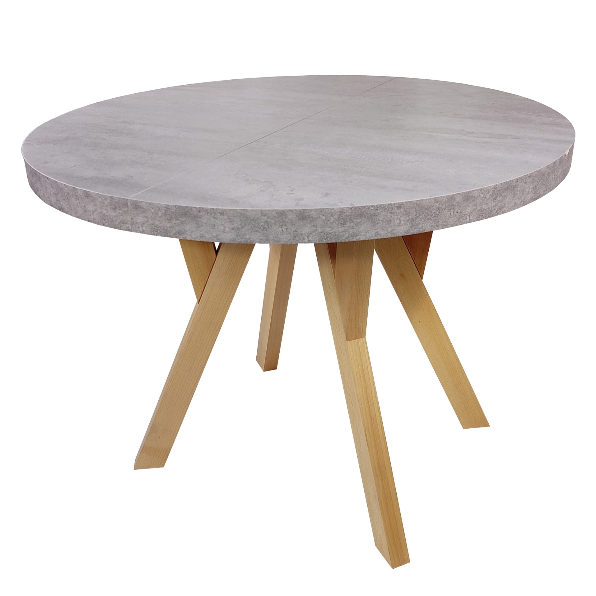 Stół okrągły rozkładany Ø 110/210 beton jasny + lakierowane nogi drewniane