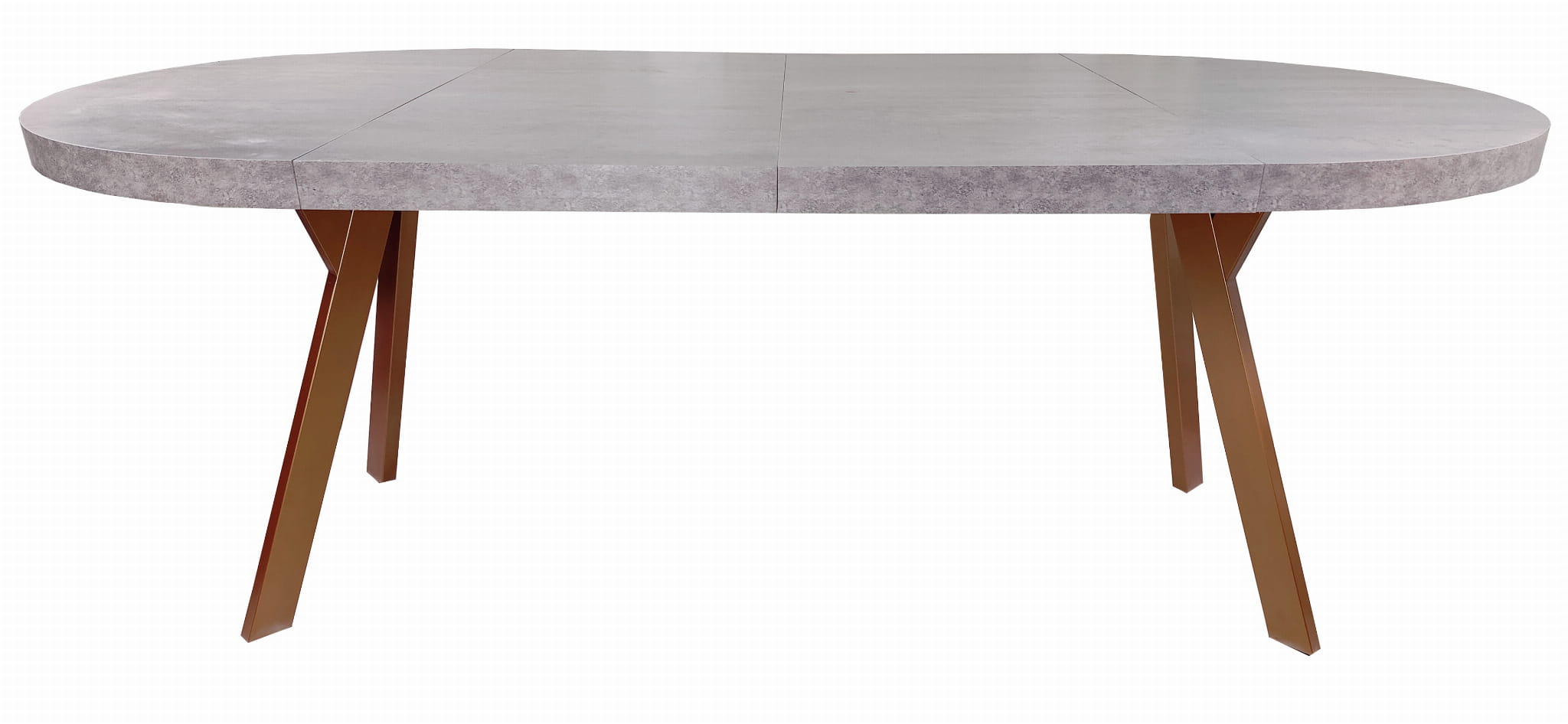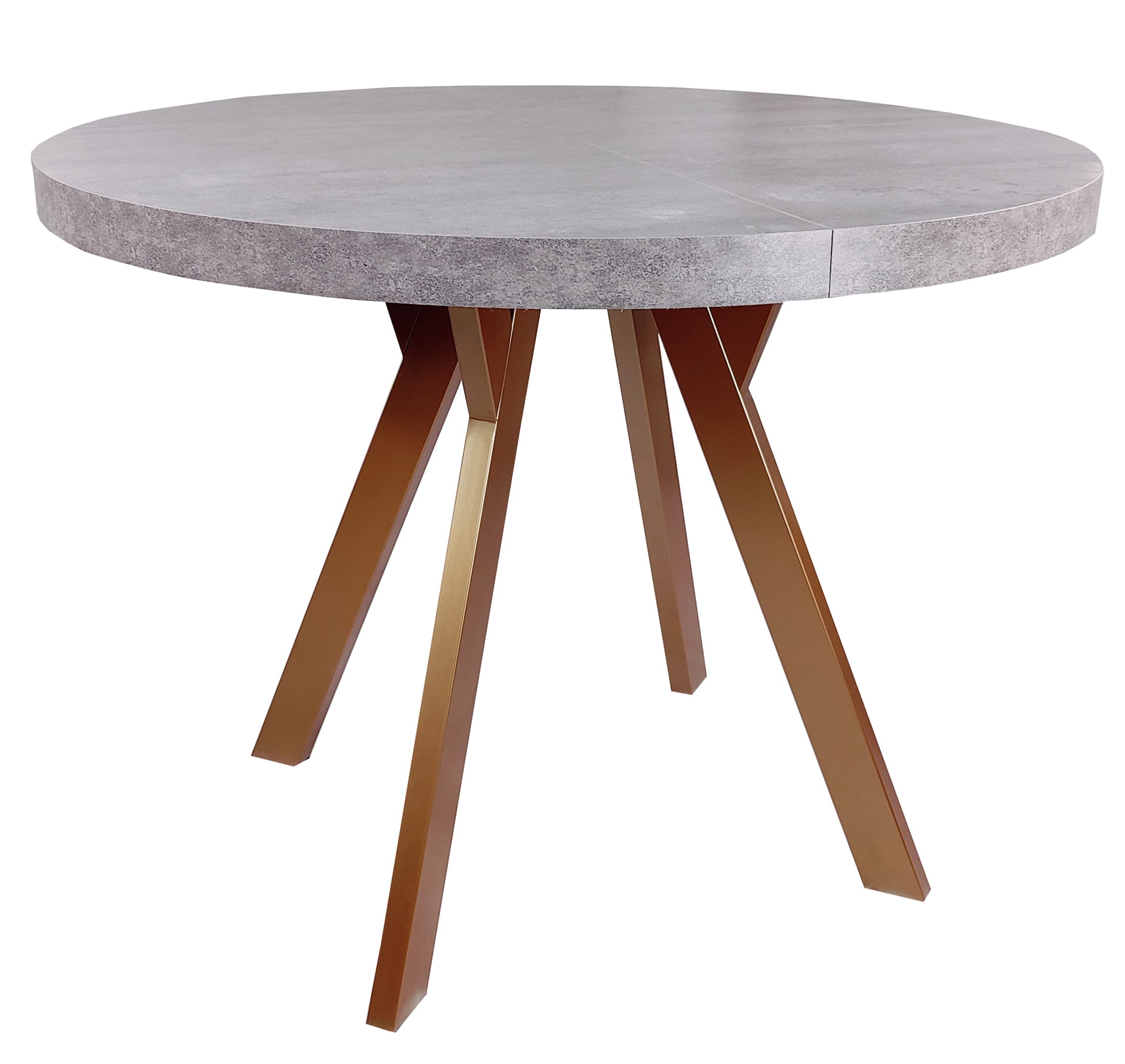 Stół okrągły rozkładany Ø 110/210 beton jasny + miedziane nogi metal Y