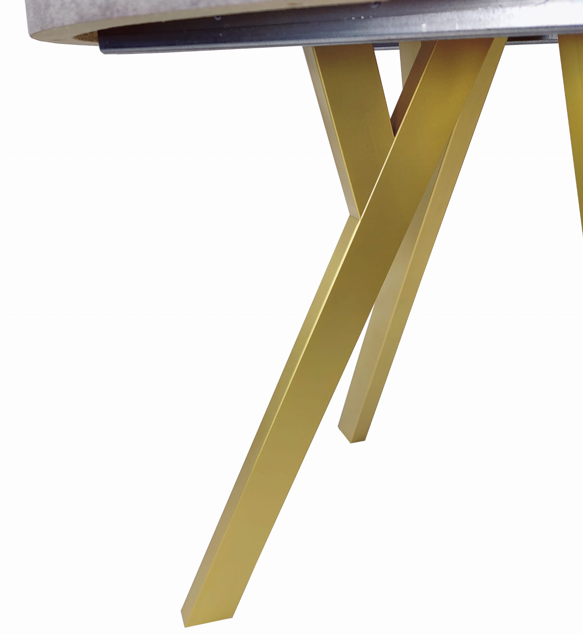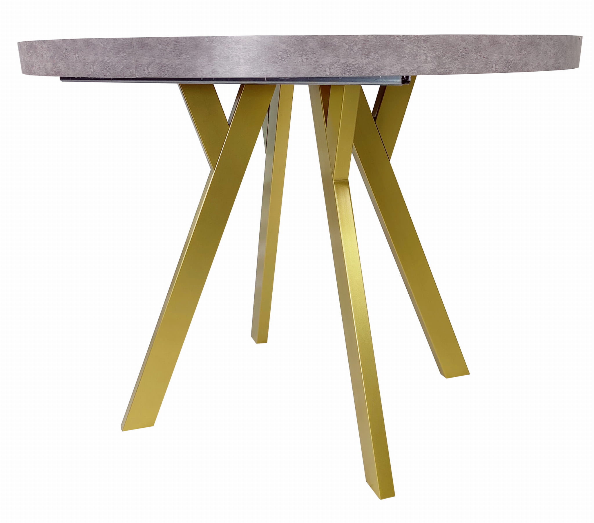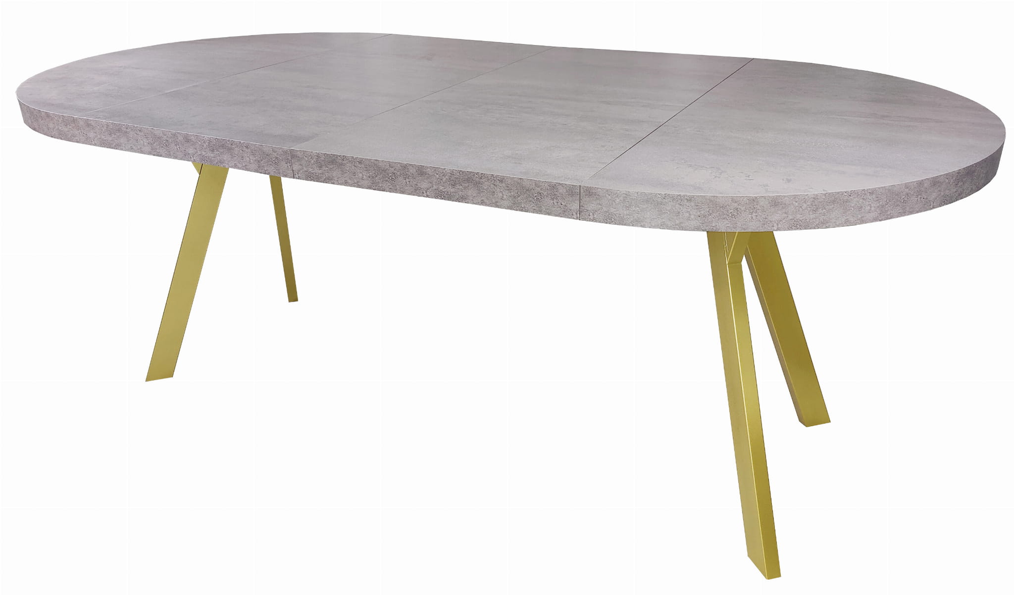 Stół okrągły rozkładany Ø 110/210 beton jasny + złote nogi metal Y