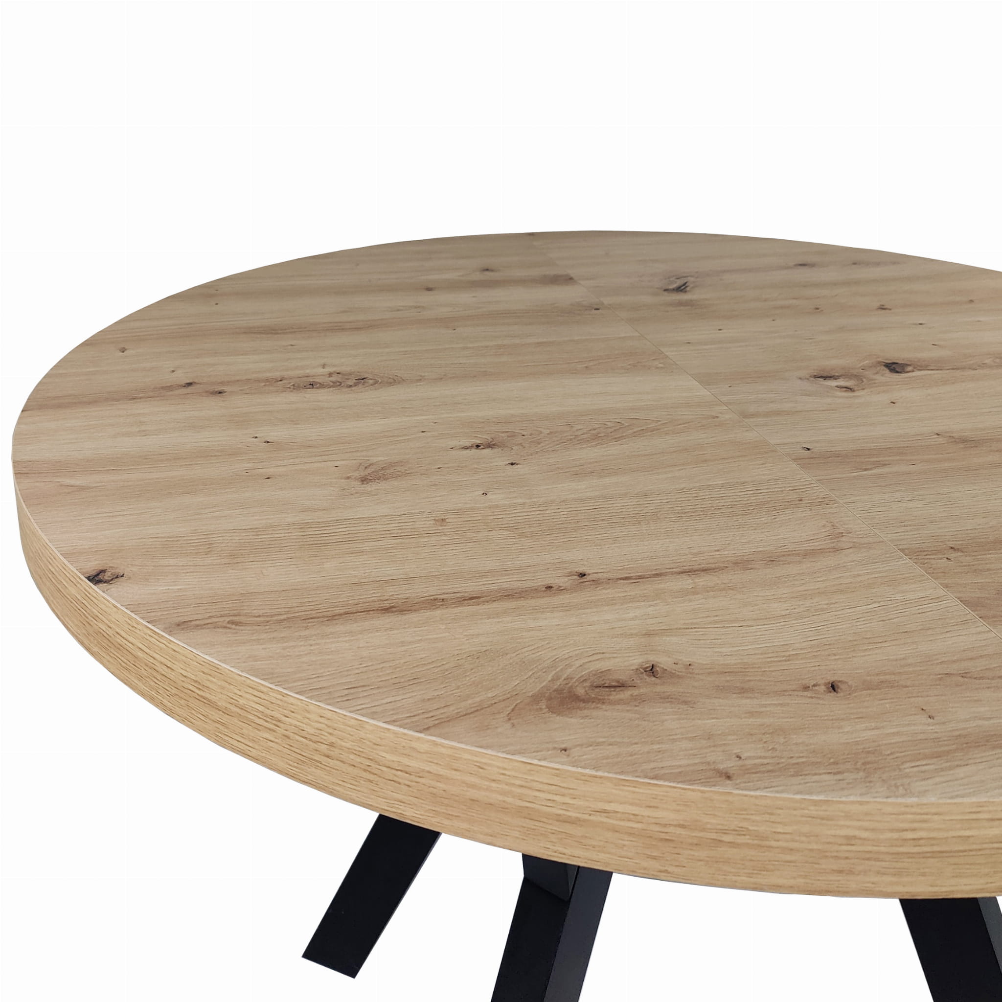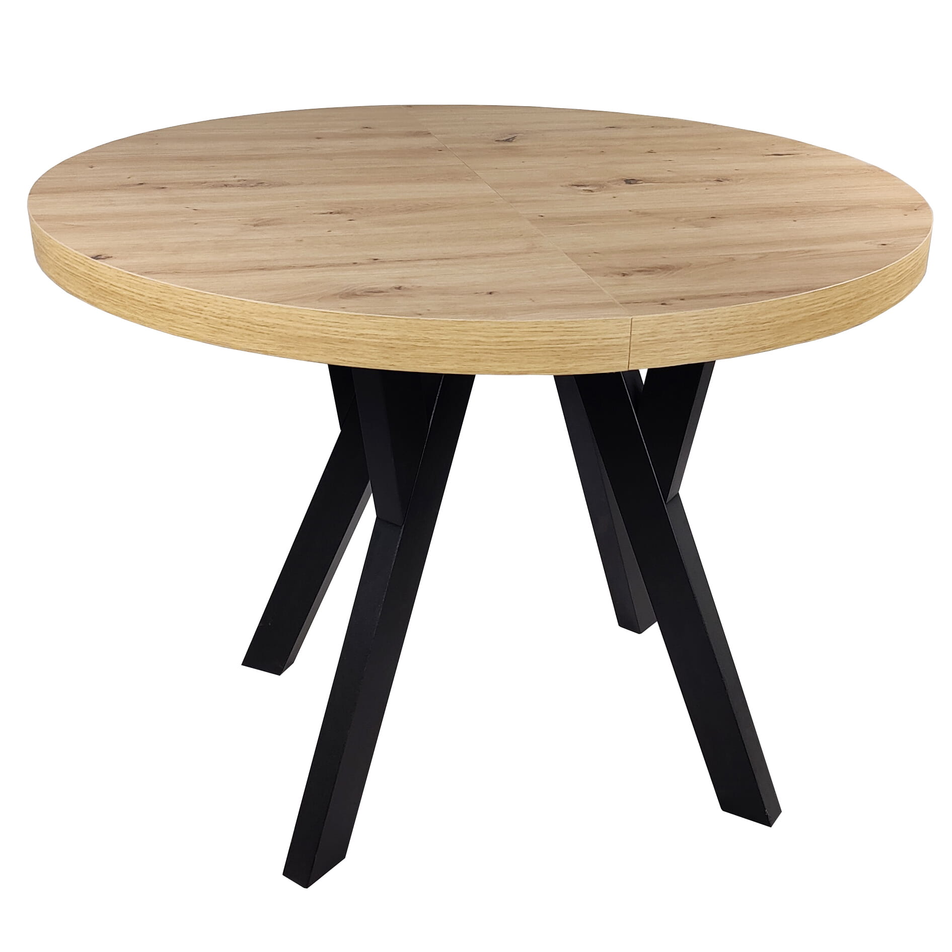 Stół okrągły rozkładany Ø 110/210 dąb artisan + czarne nogi