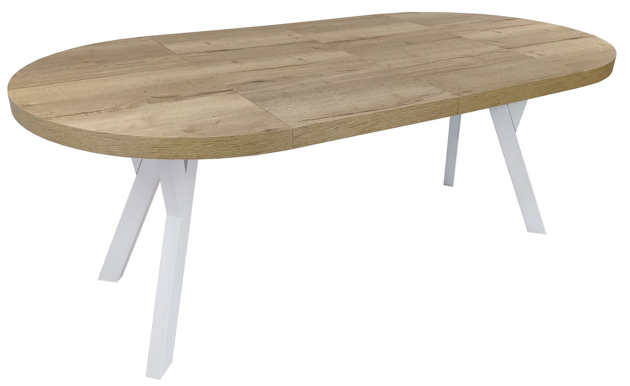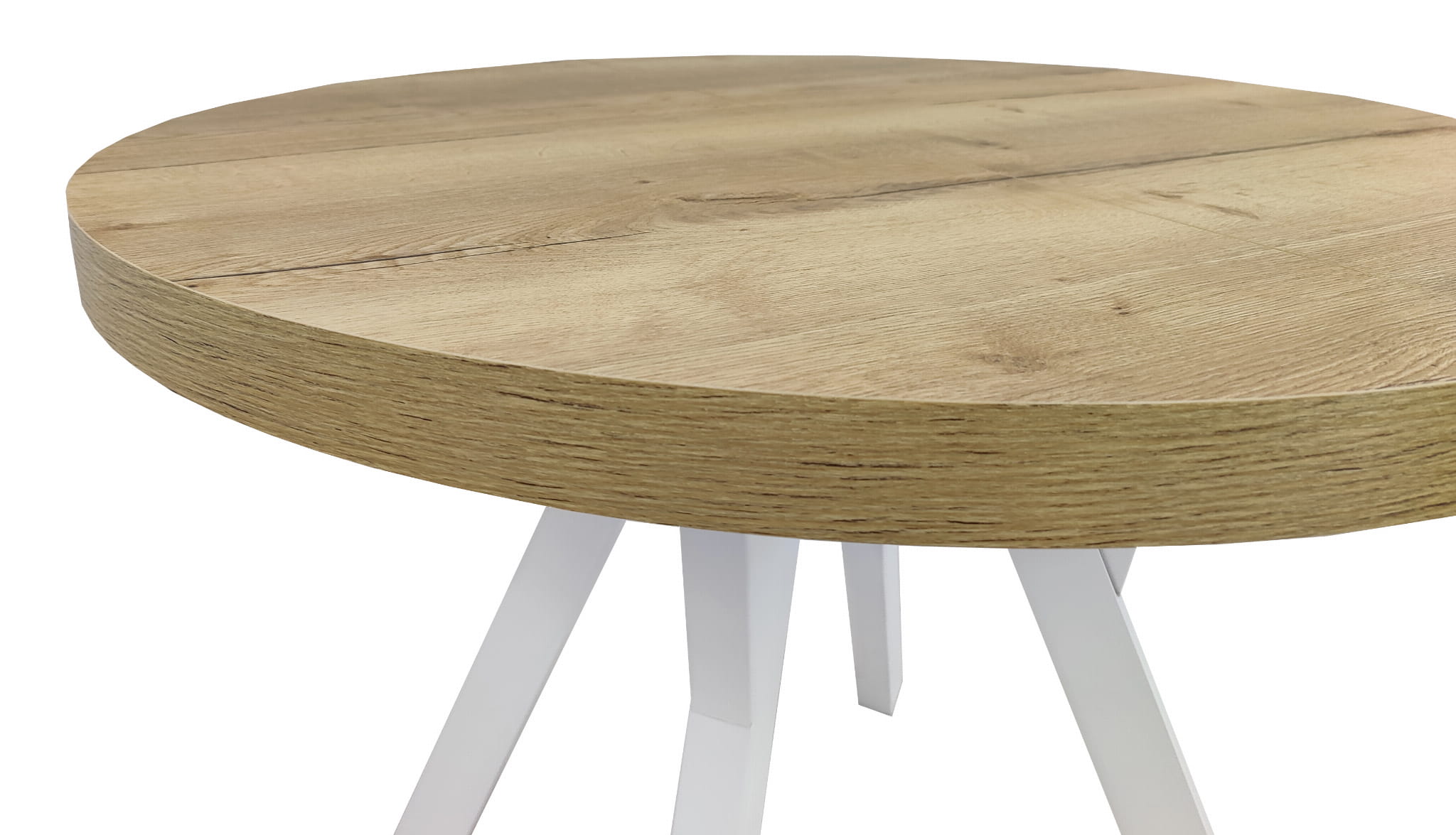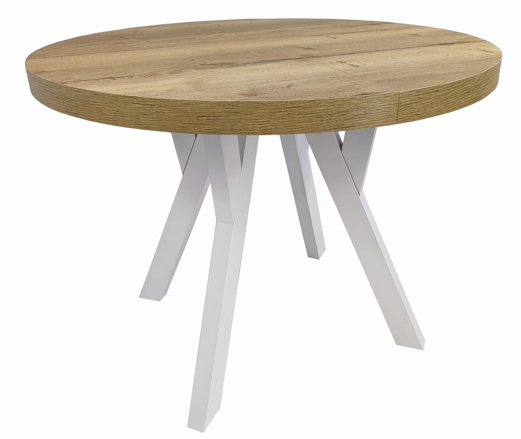Stół okrągły rozkładany Ø 110/210 dąb halifax egger + białe nogi