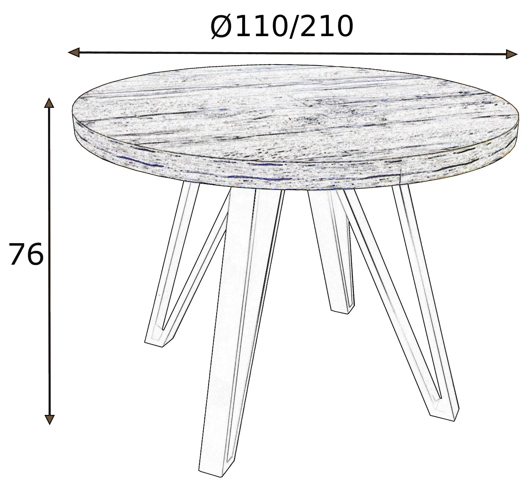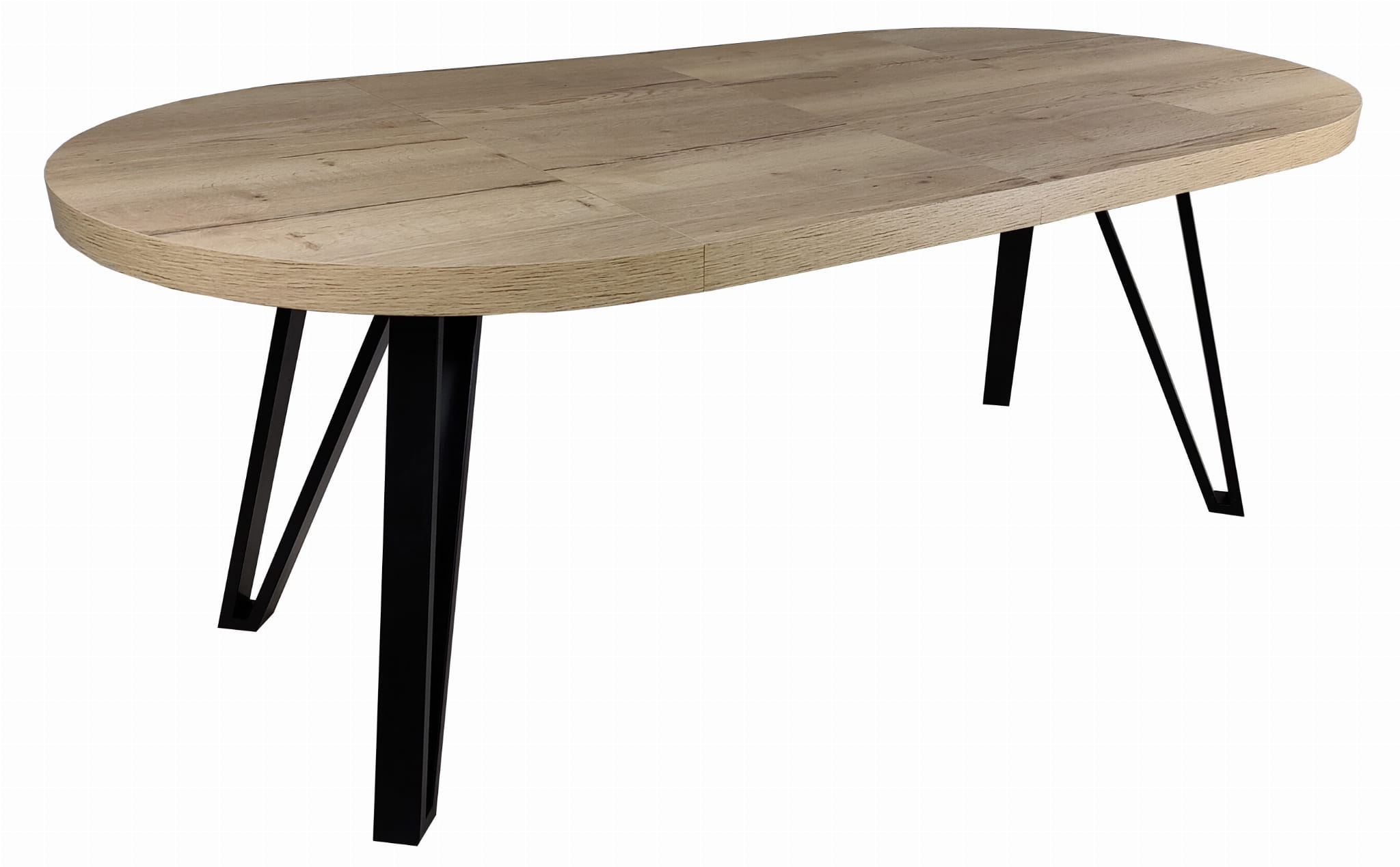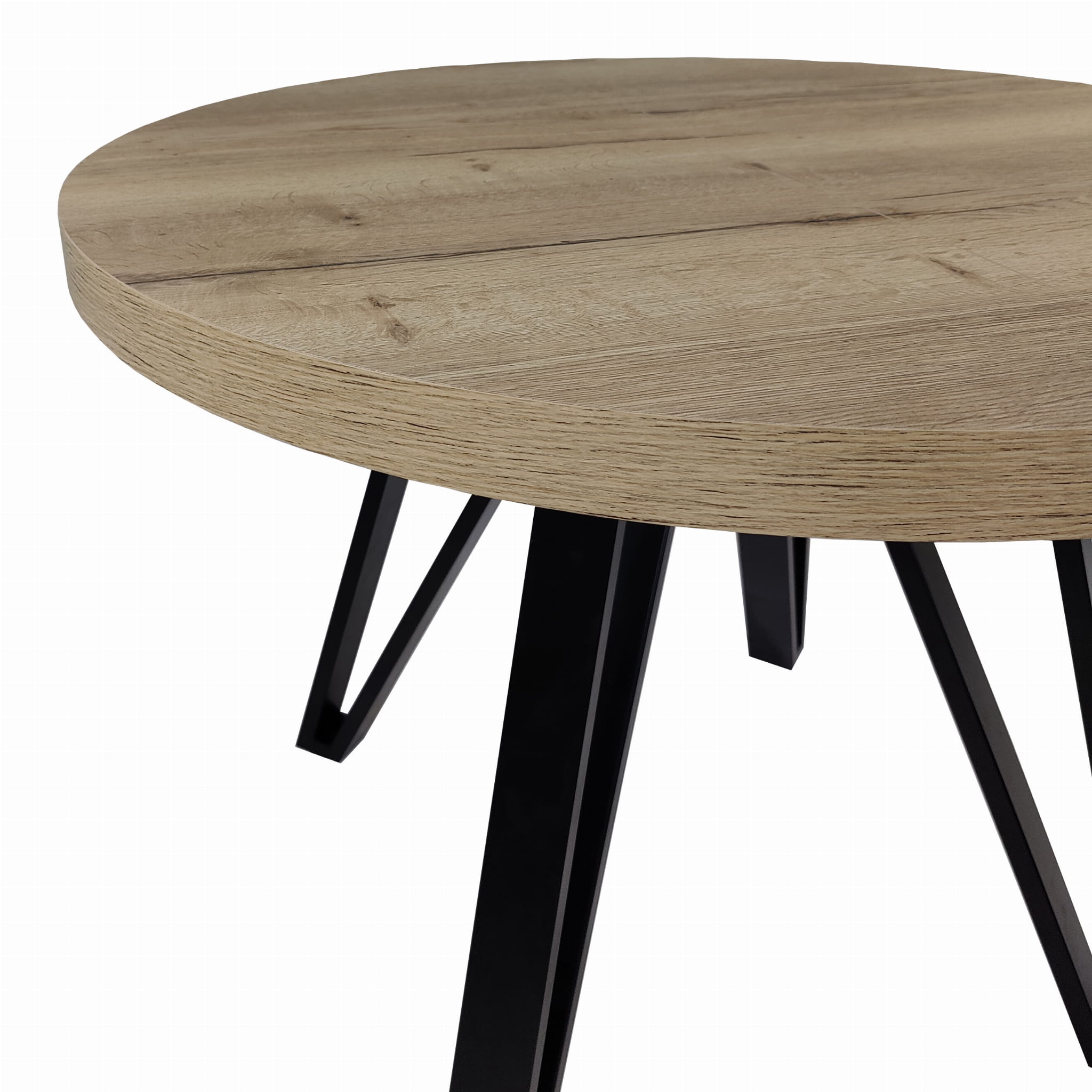Stół okrągły rozkładany Ø 110/210 dąb halifax egger + czarne nogi metal industrial