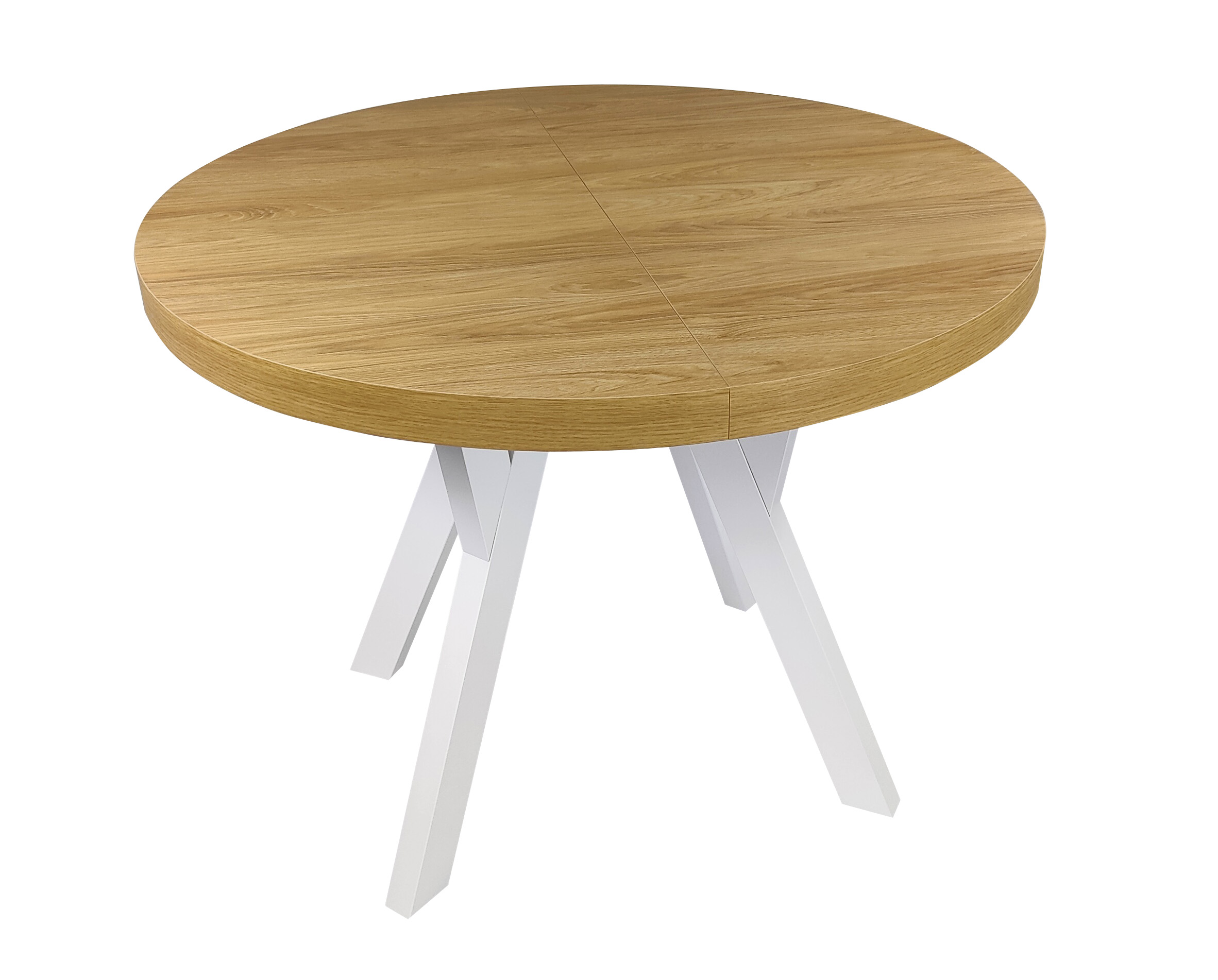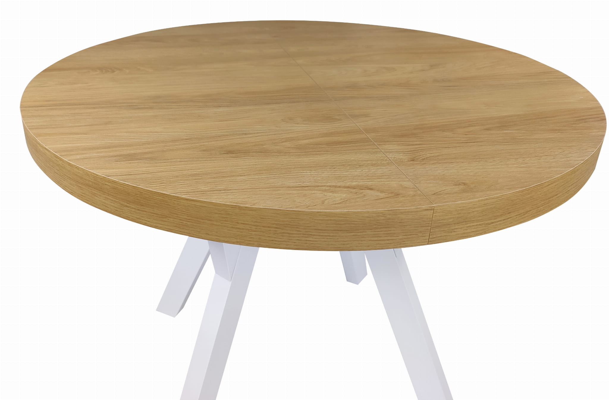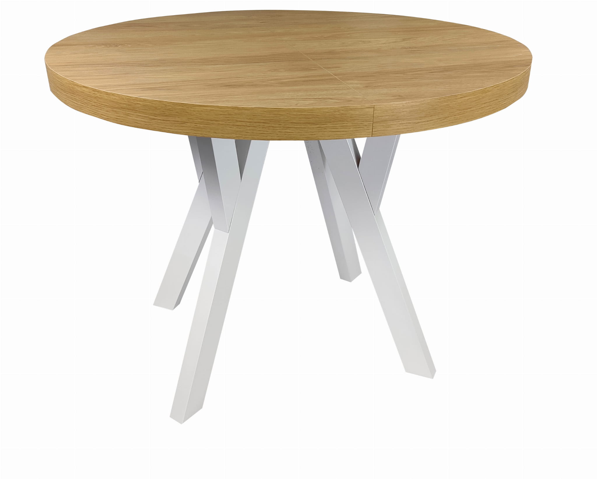 Stół okrągły rozkładany Ø 110/210 dąb hikkora egger + białe nogi