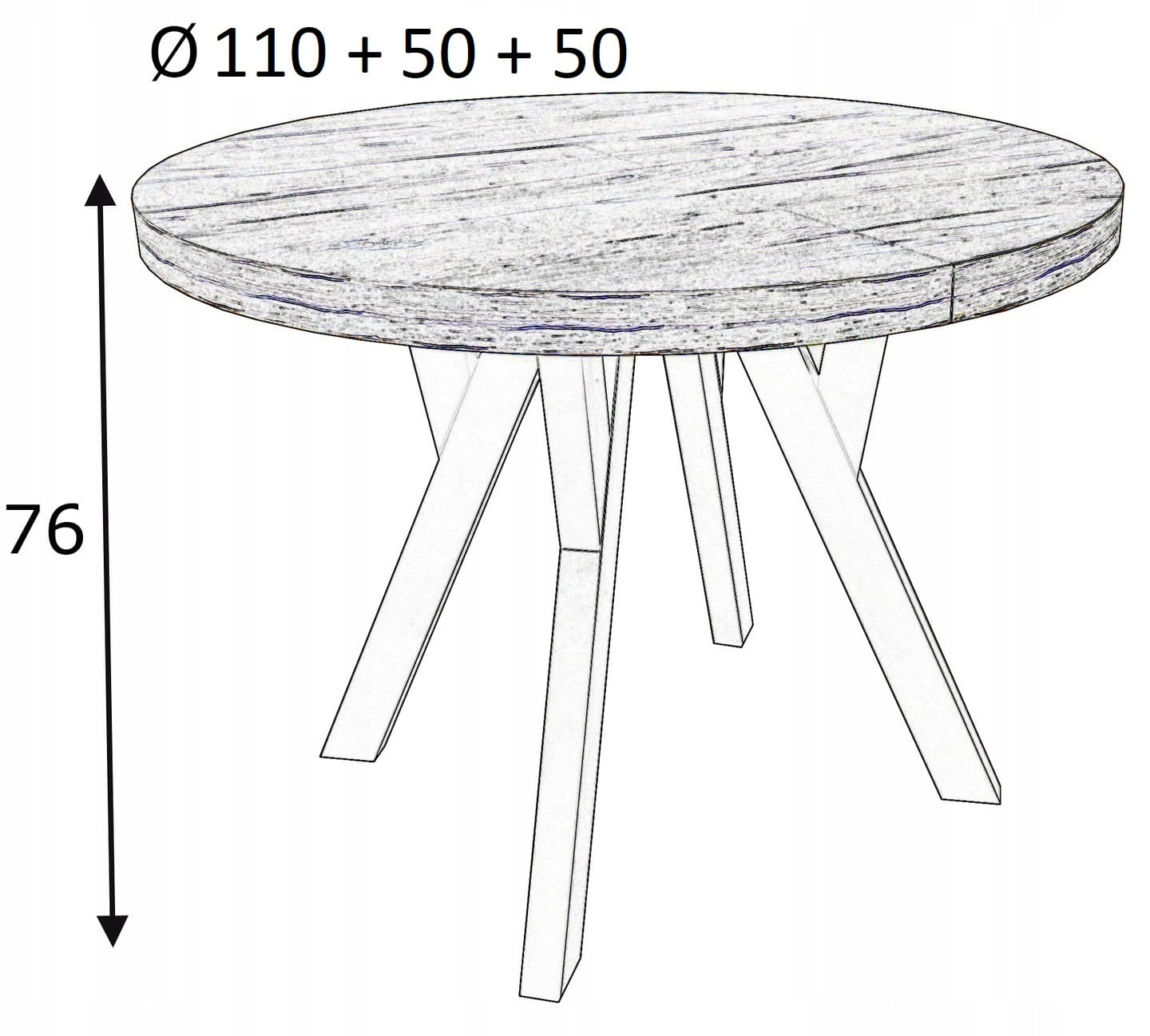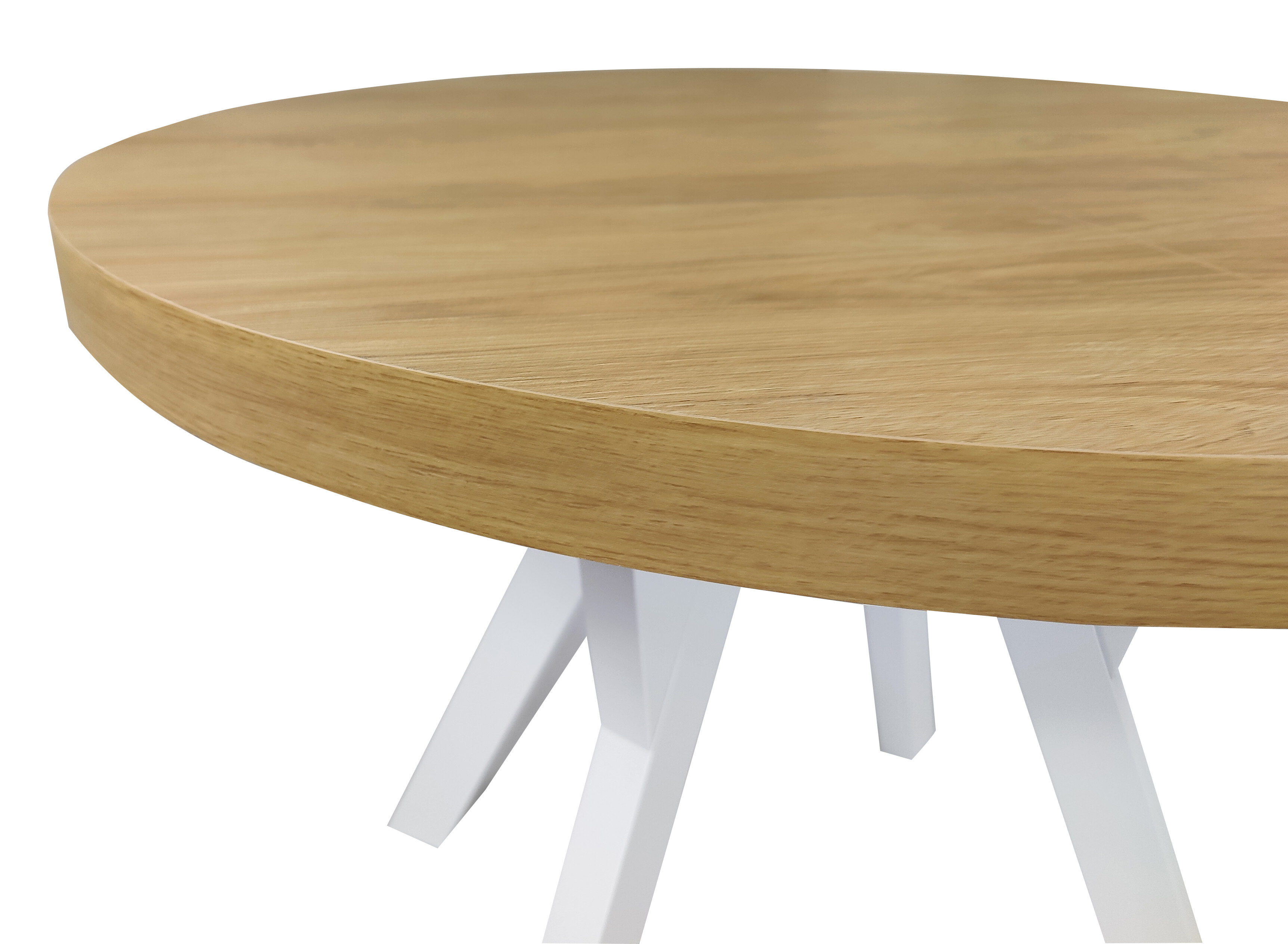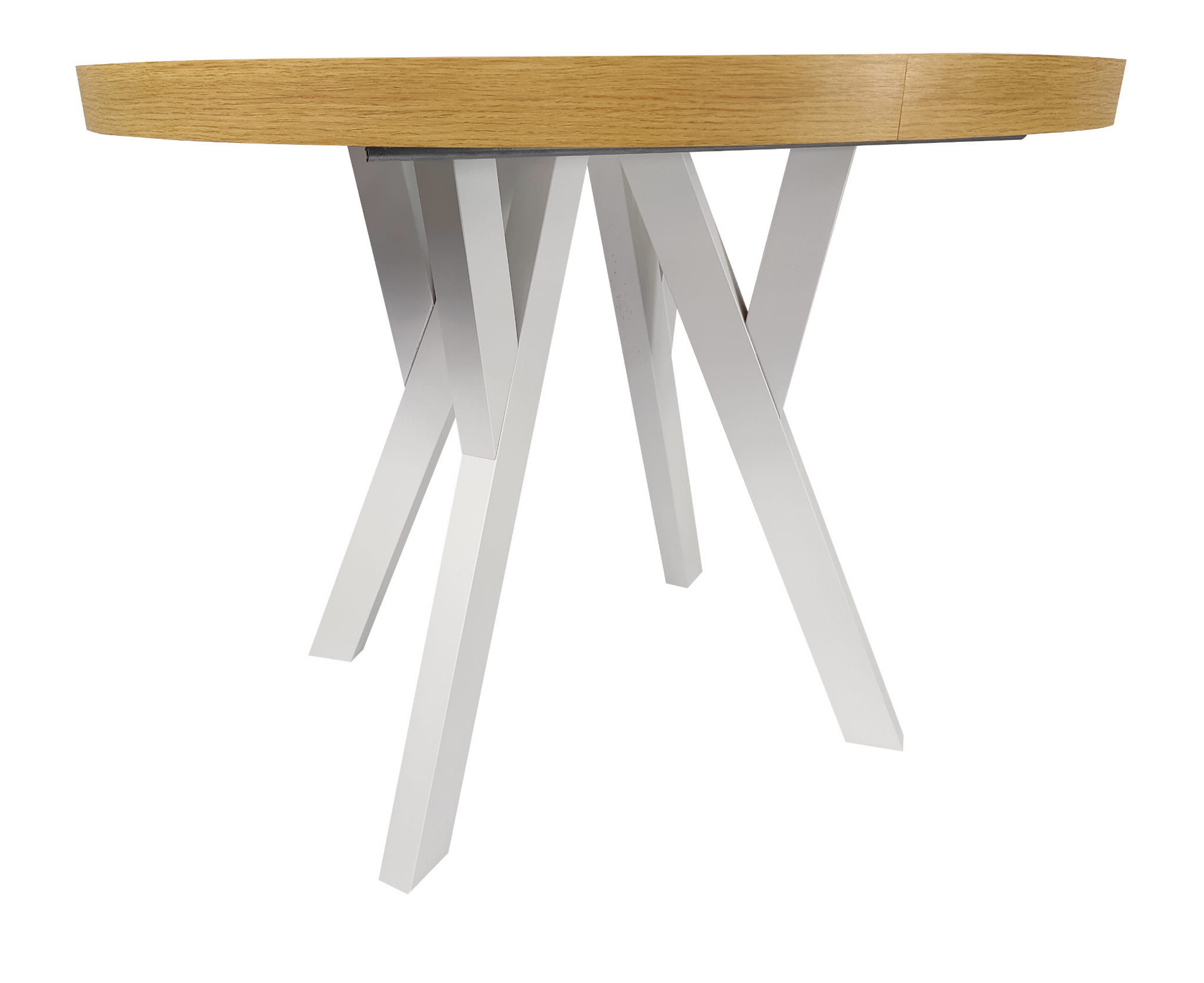 Stół okrągły rozkładany Ø 110/210 dąb hikkora egger + białe nogi