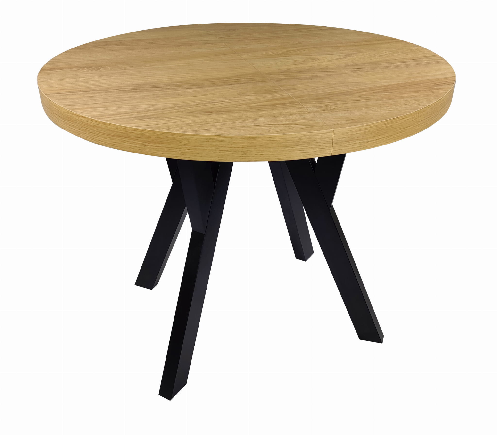 Stół okrągły rozkładany Ø 110/210 dąb hikora egger + czarne nogi