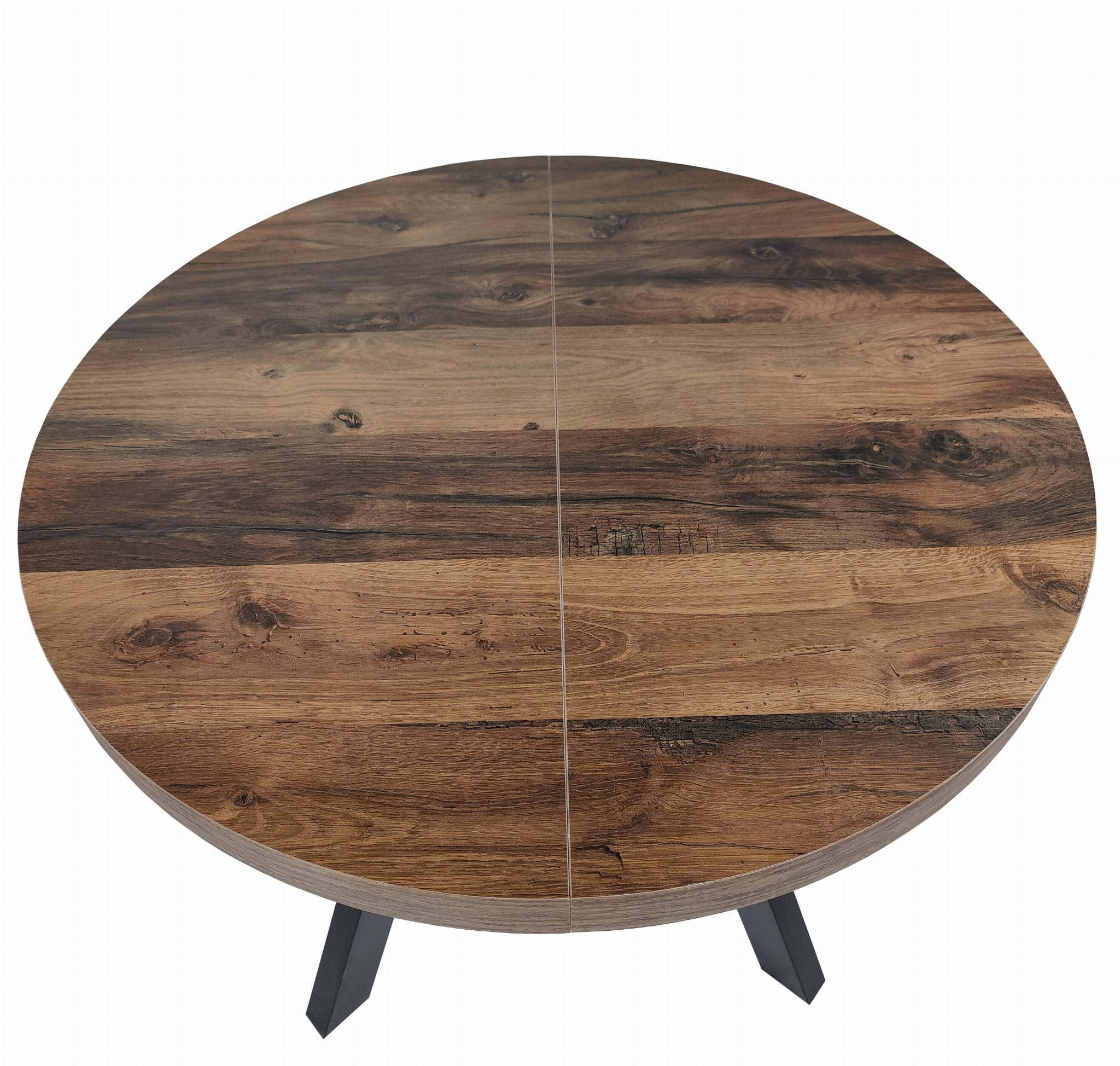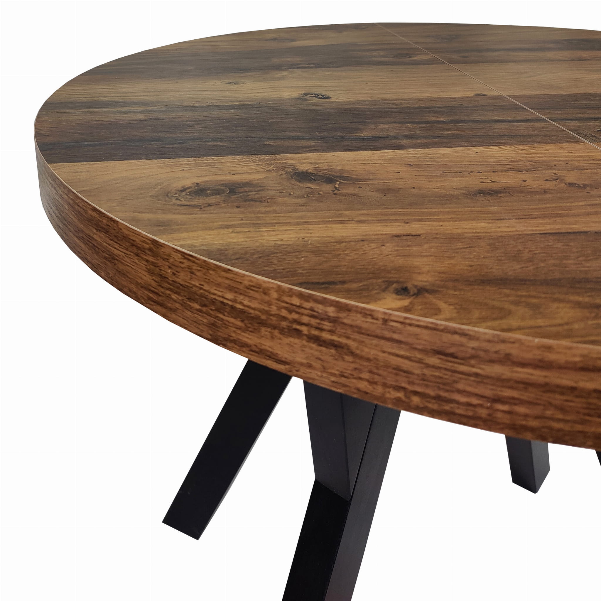Stół okrągły rozkładany Ø 110/210 dąb hunton + czarne nogi