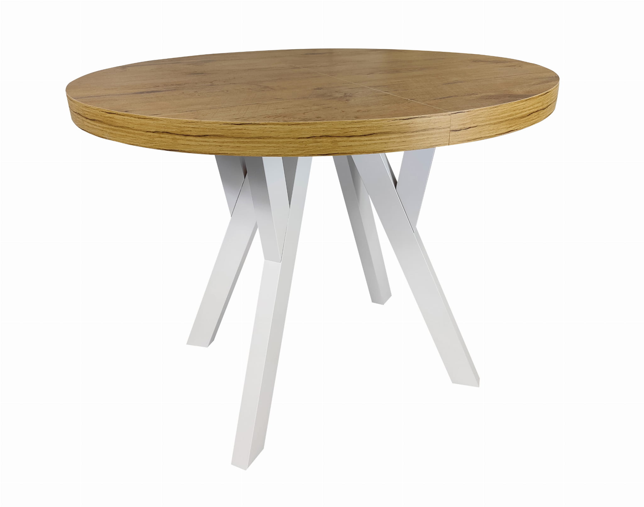 Stół okrągły rozkładany Ø 110/210 dąb lancelot + białe nogi