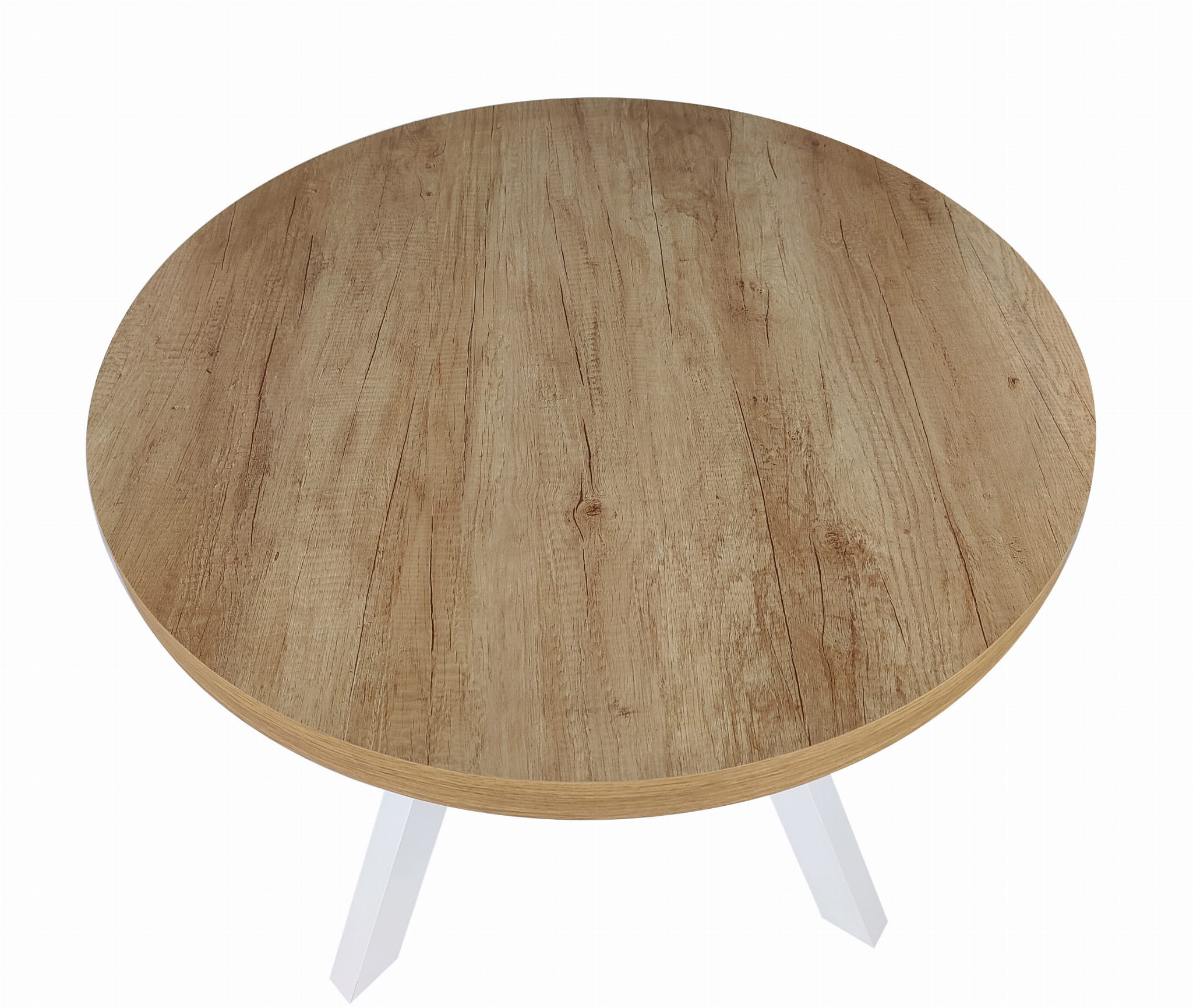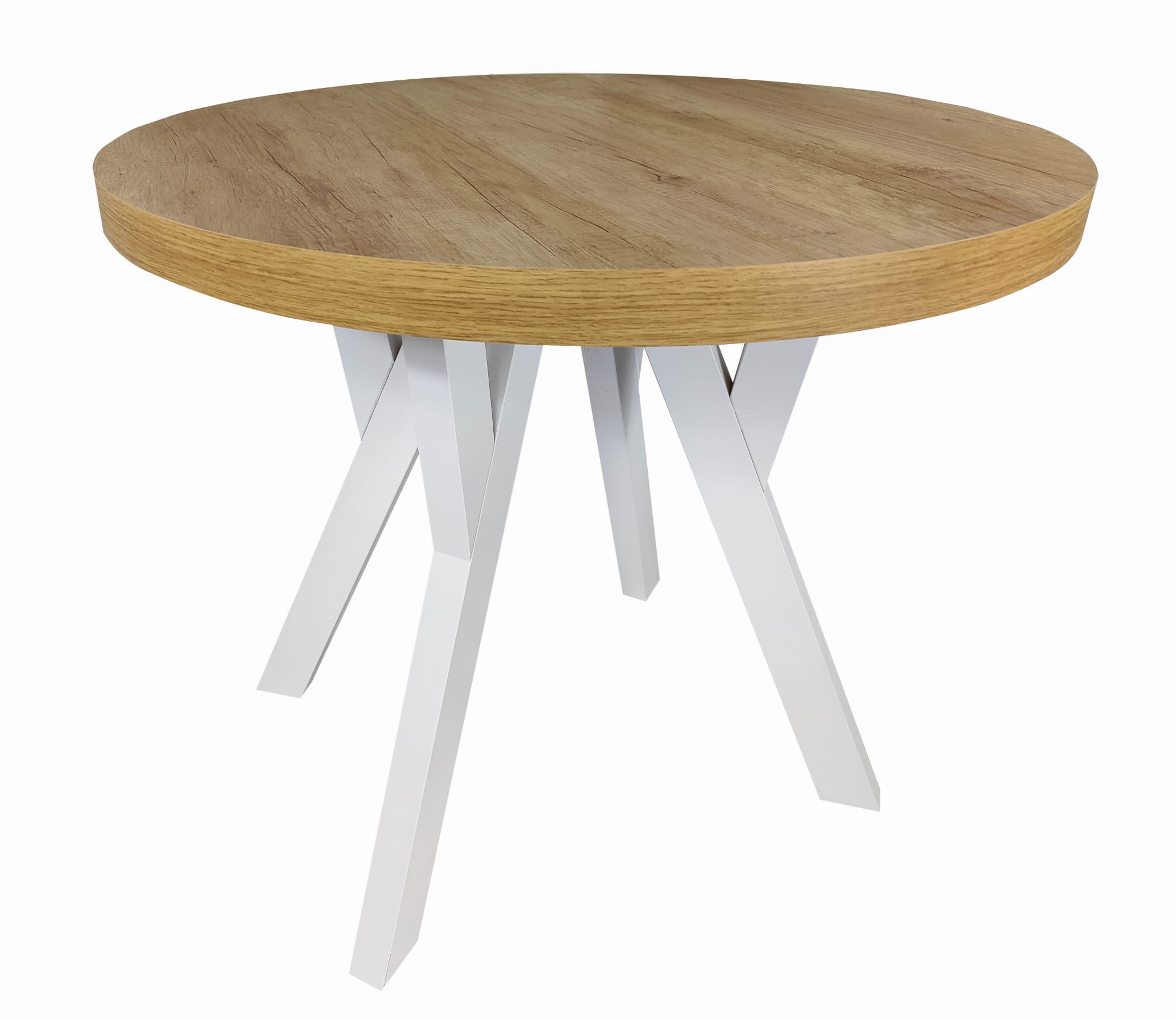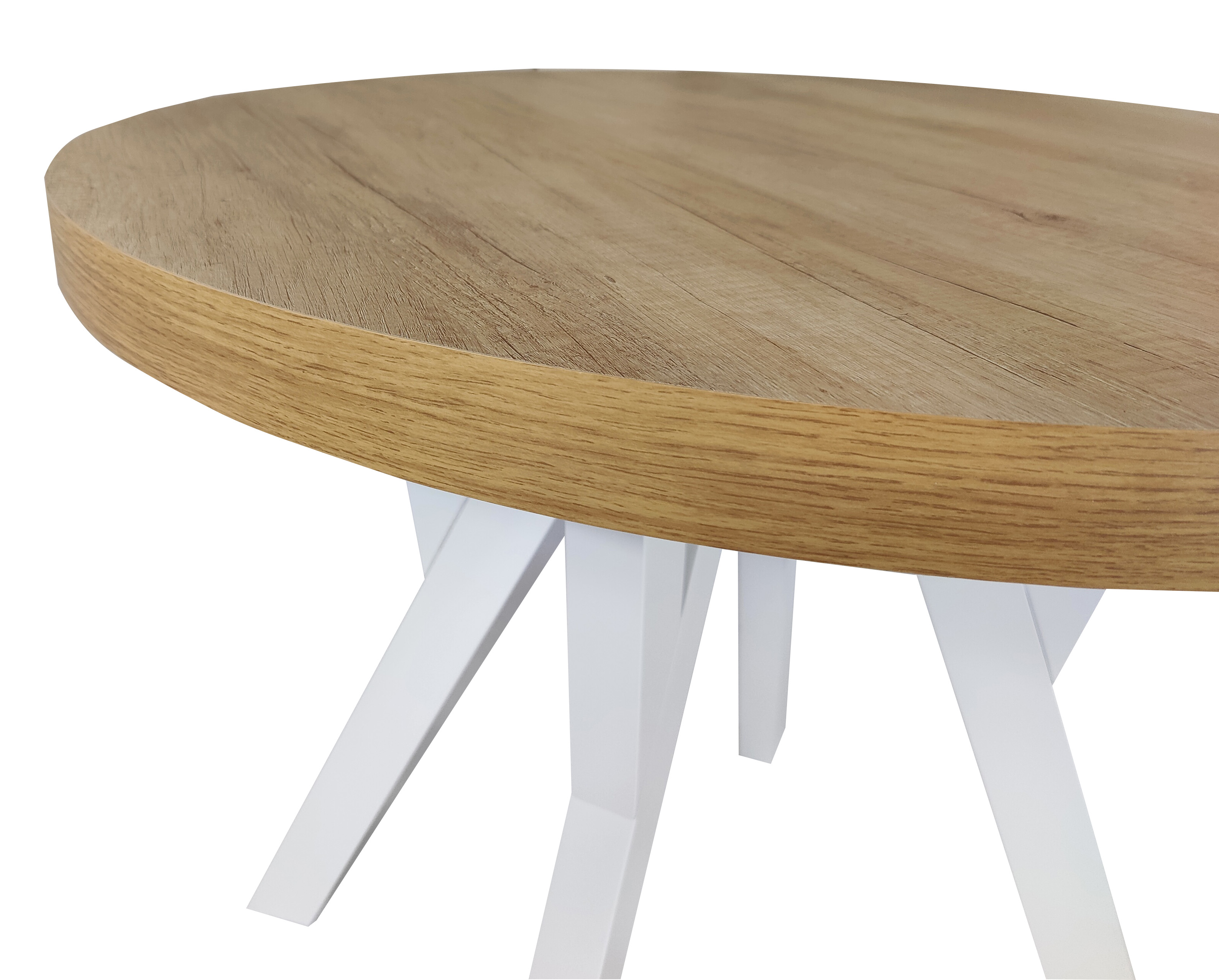 Stół okrągły rozkładany Ø 110/210 dąb nebraska egger + białe nogi