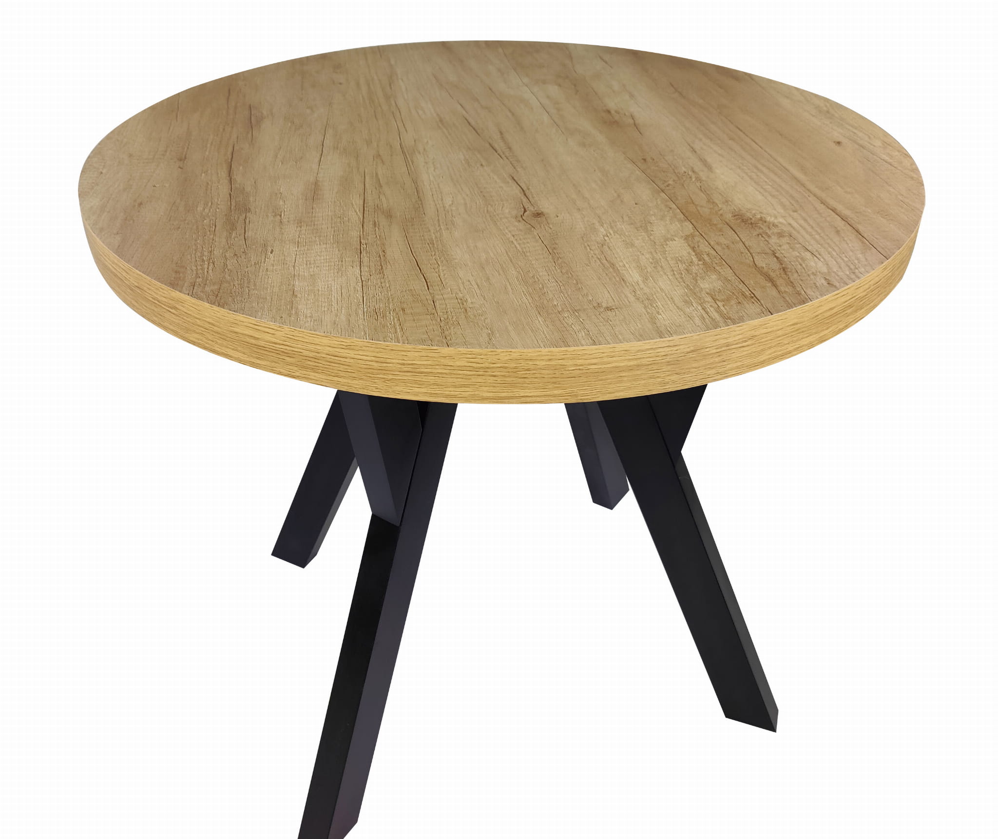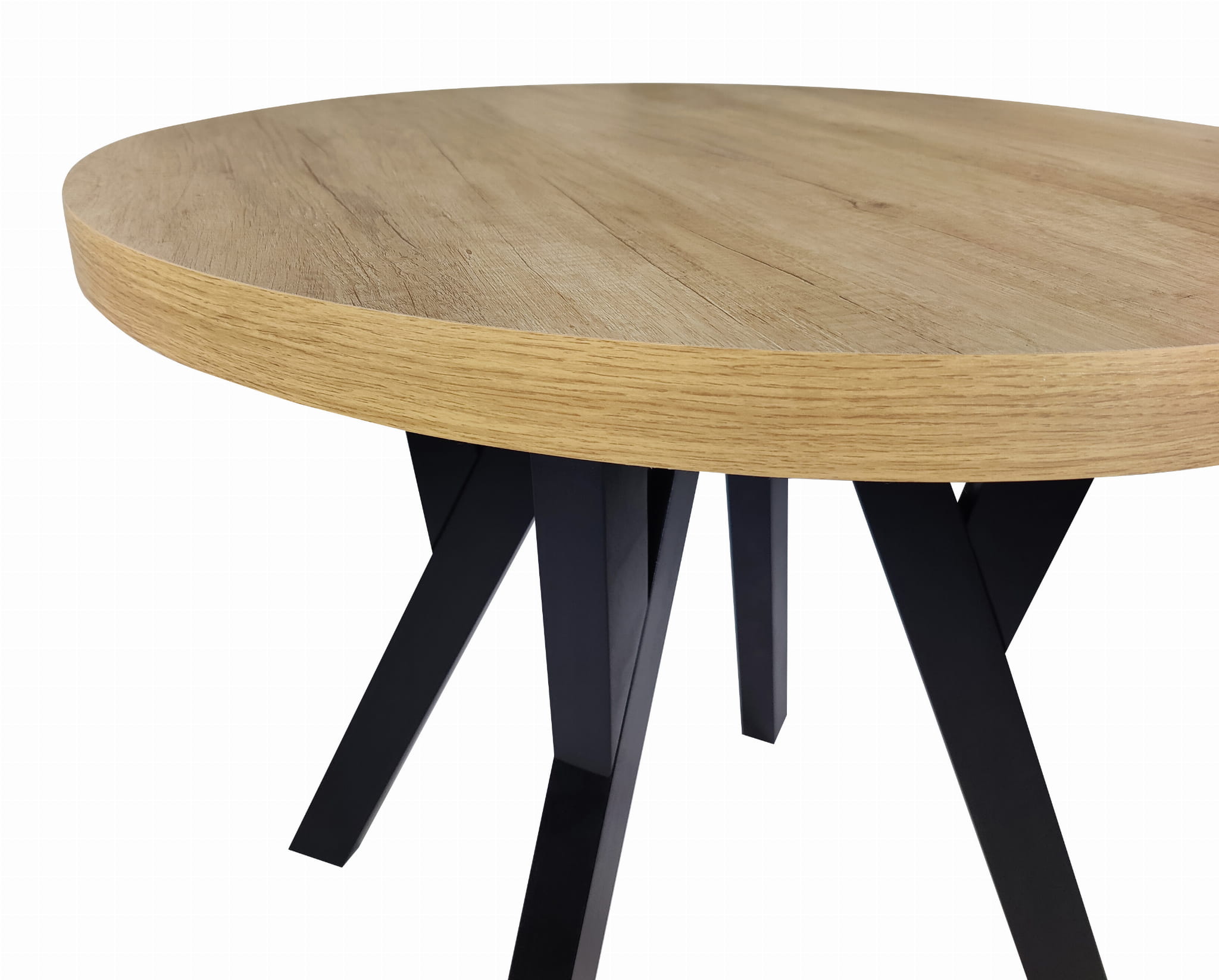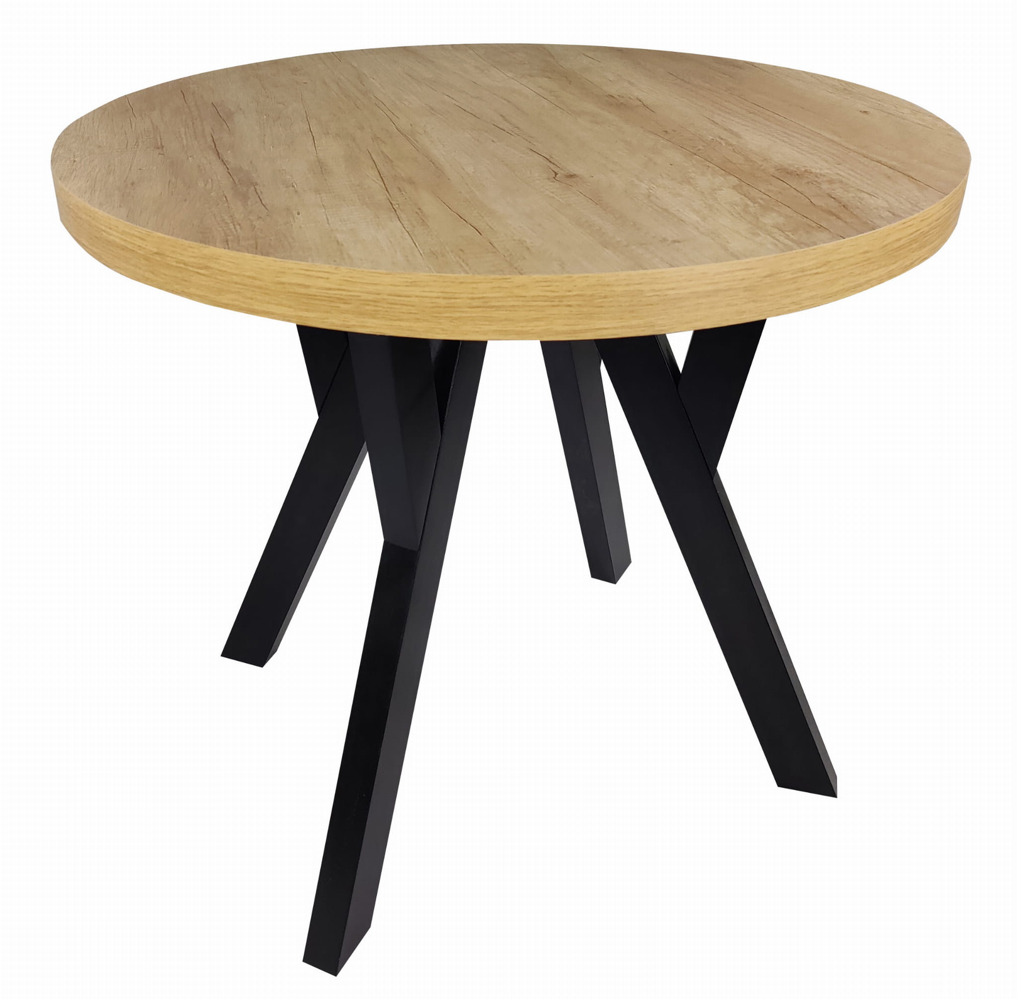 Stół okrągły rozkładany Ø 110/210 dąb nebraska egger + czarne nogi