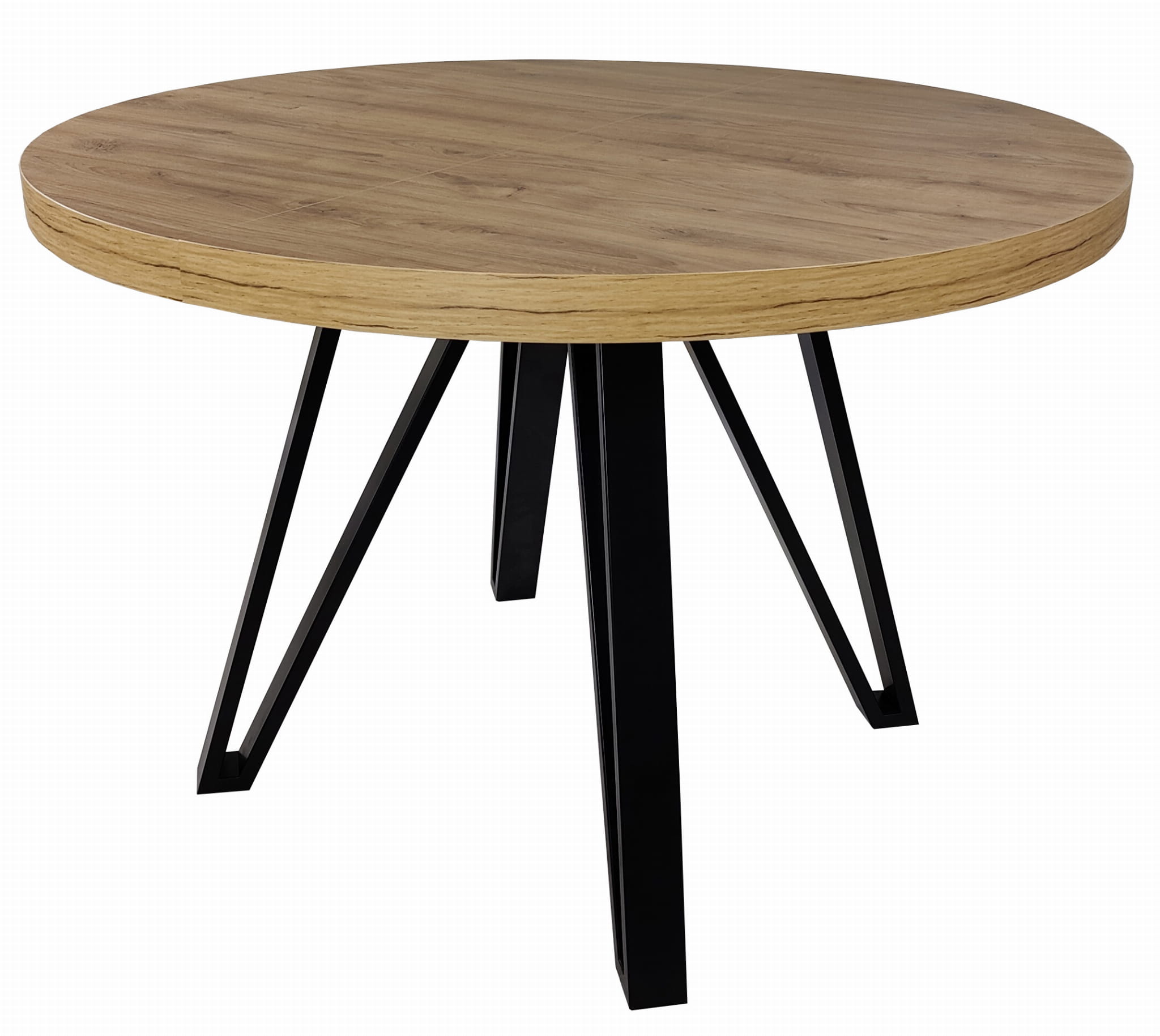 Stół okrągły rozkładany Ø 110/210 dąb odwieczny + czarne nogi metal industrial