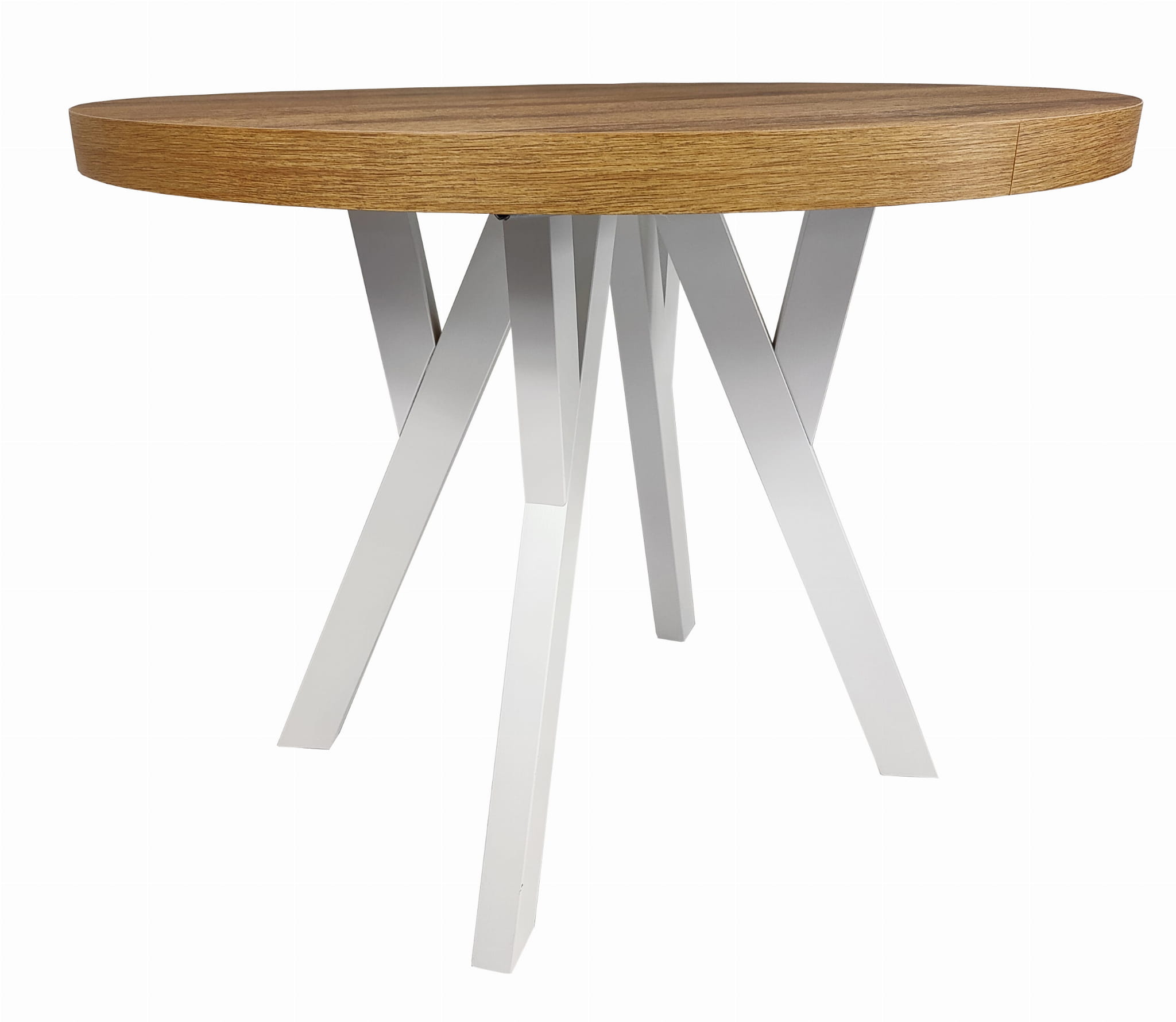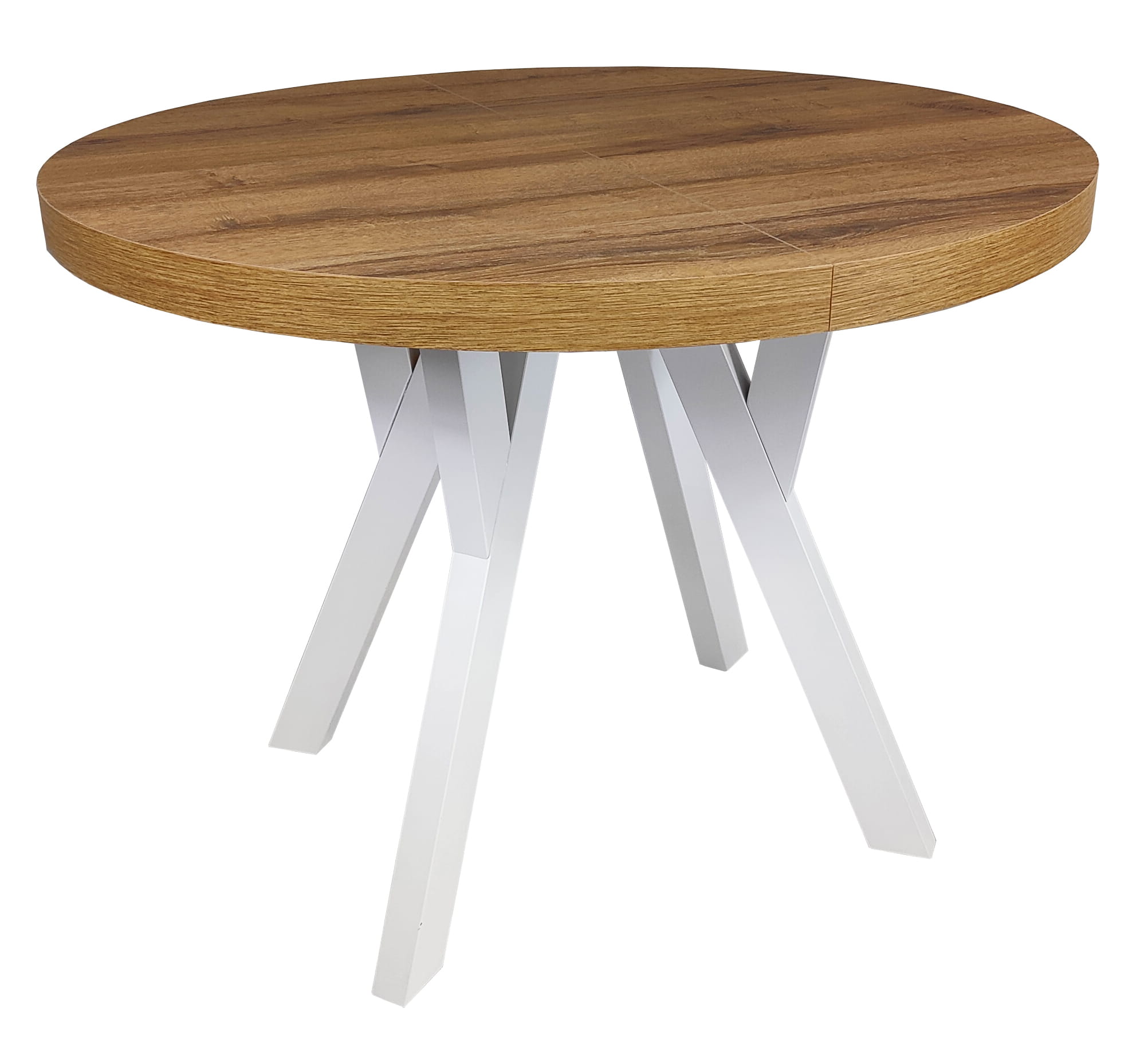Stół okrągły rozkładany Ø 110/210 dąb sherman koniak + białe nogi