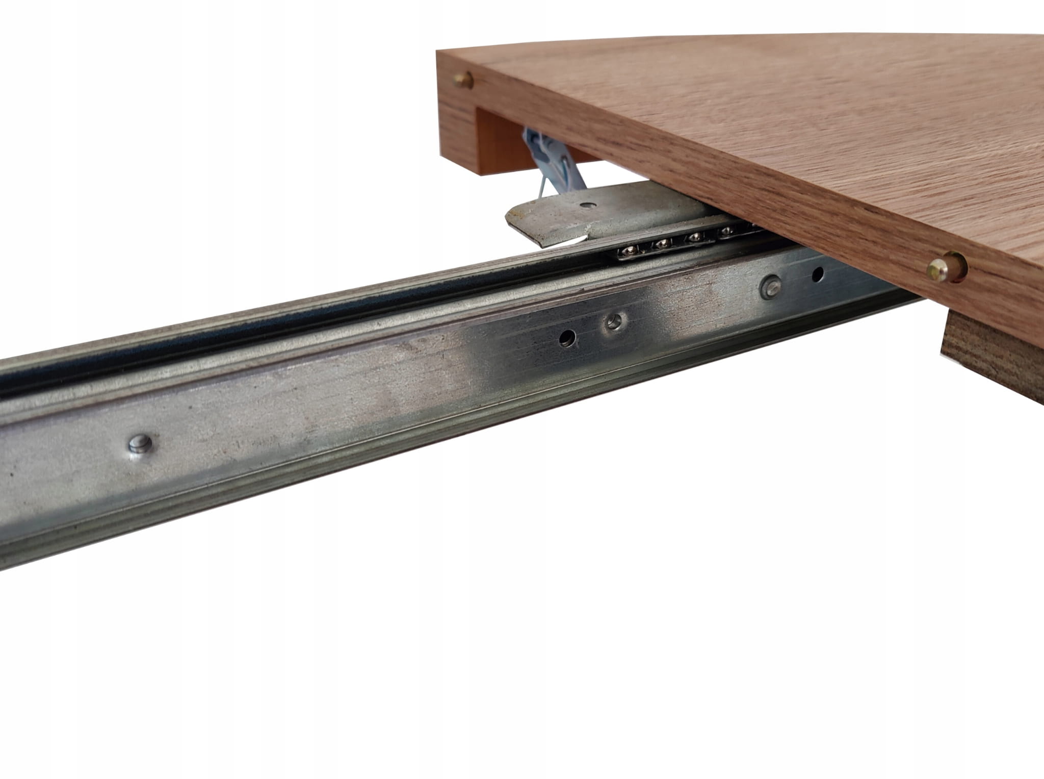 Stół rozkładany na prowadnicach łożyskowych. Stół posiada jedną lub dwie wkładki po 50 cm (w zależności od wybranego produktu)