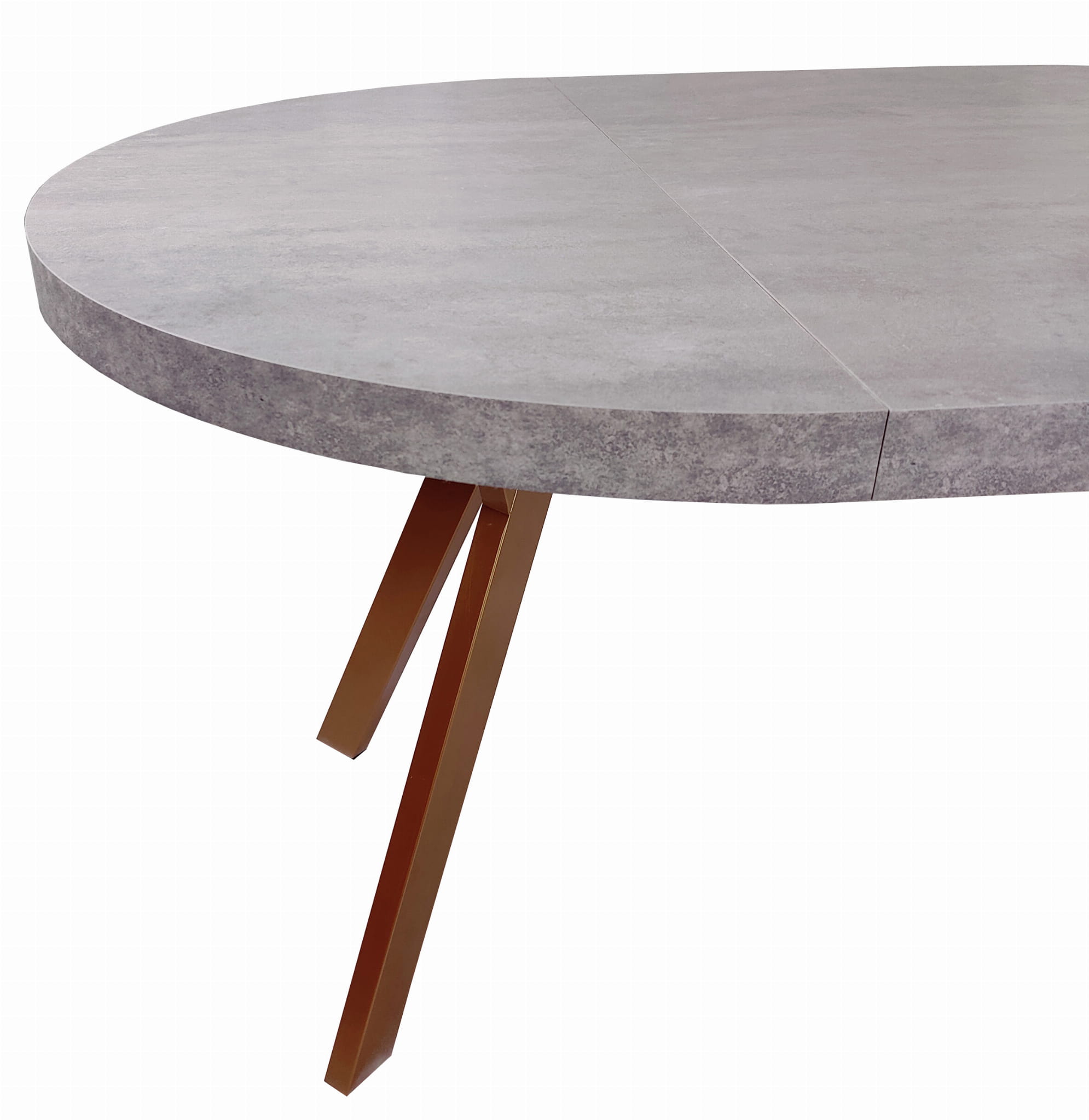 Stół okrągły rozkładany Ø 90/190 beton jasny + miedziane nogi metal Y