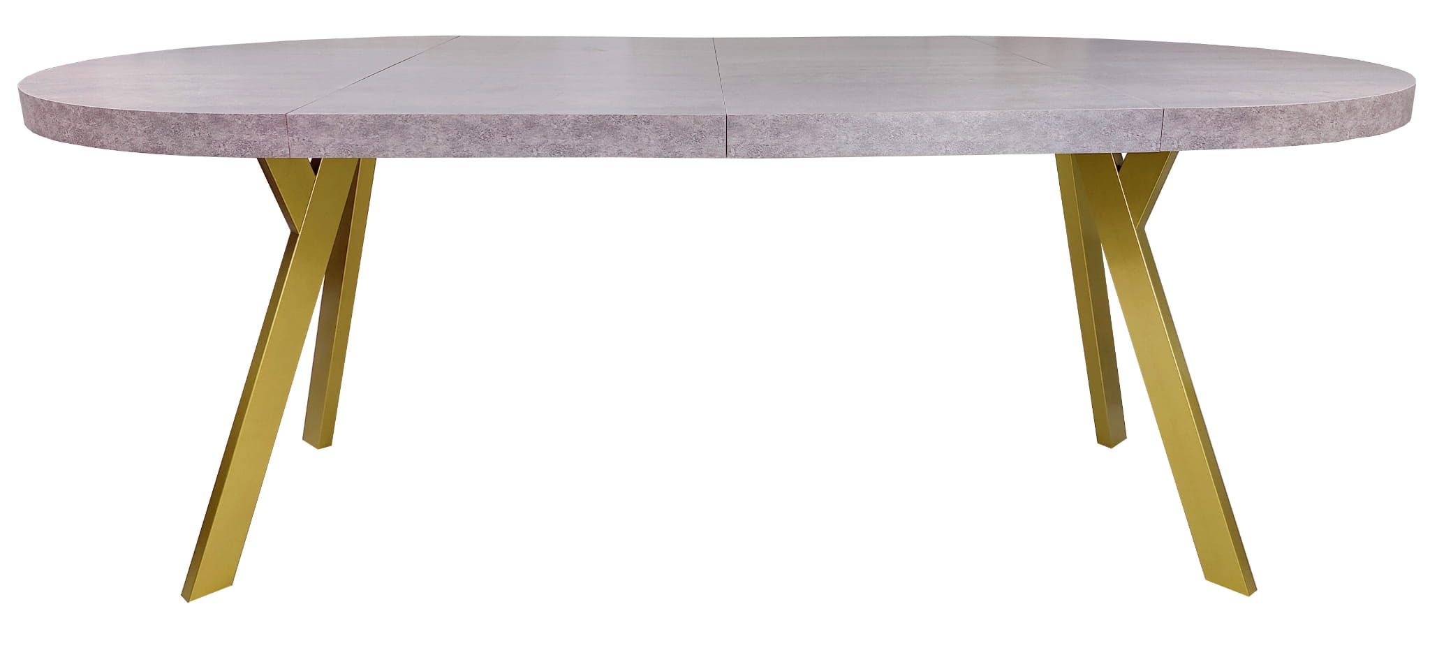 Stół okrągły rozkładany Ø 90/190 beton jasny + złote nogi metal Y