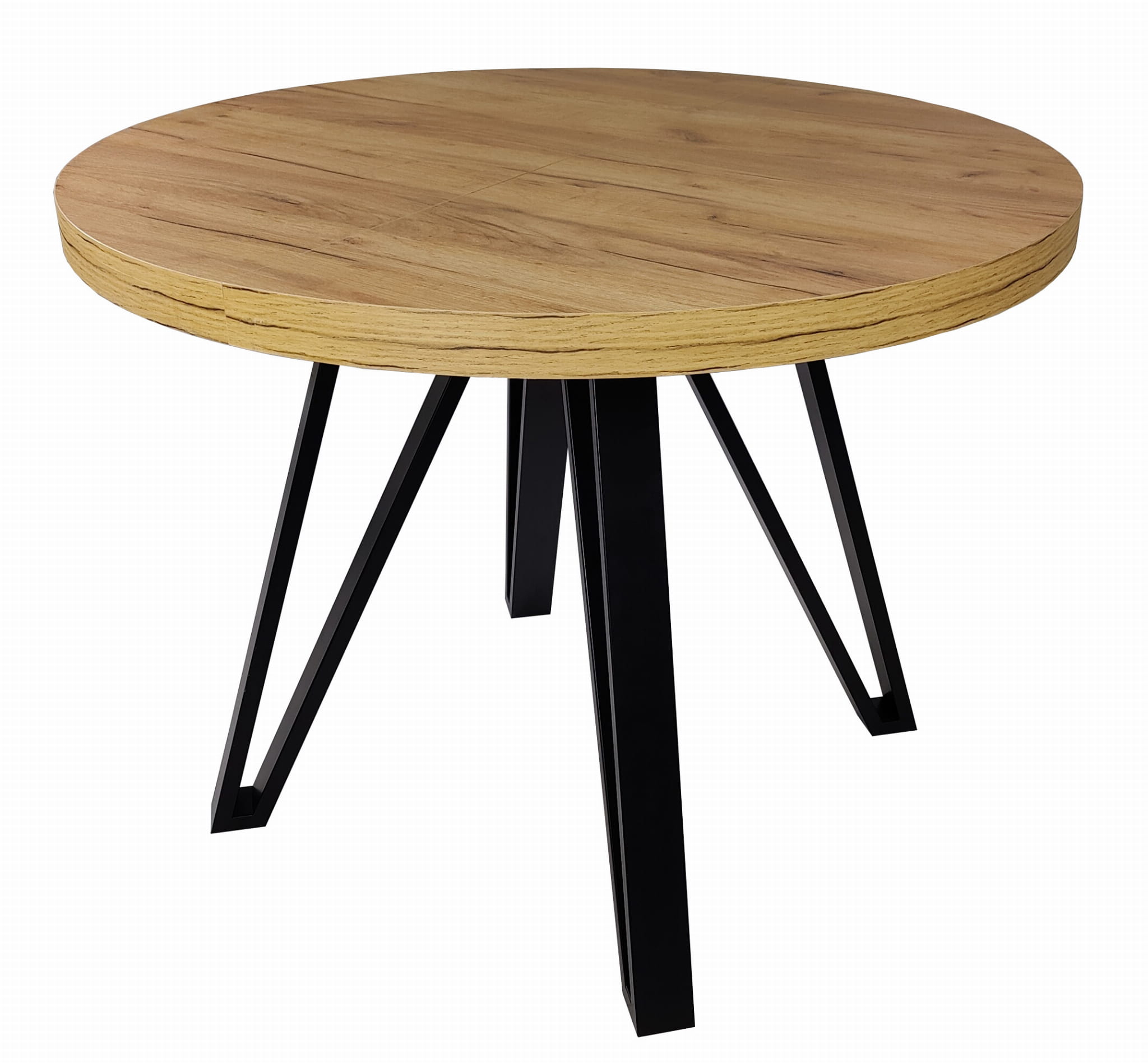 Stół okrągły rozkładany Ø 90/190 dąb craft + czarne nogi metal industrial