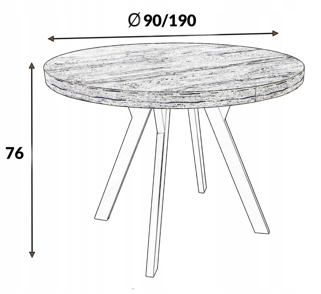 Solidny stół rozkładany Ø90/190 cm do salonu, jadalni, biura, sali konferencyjnej