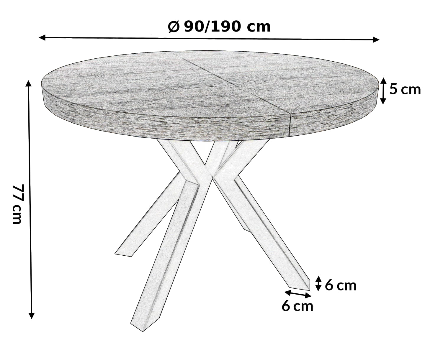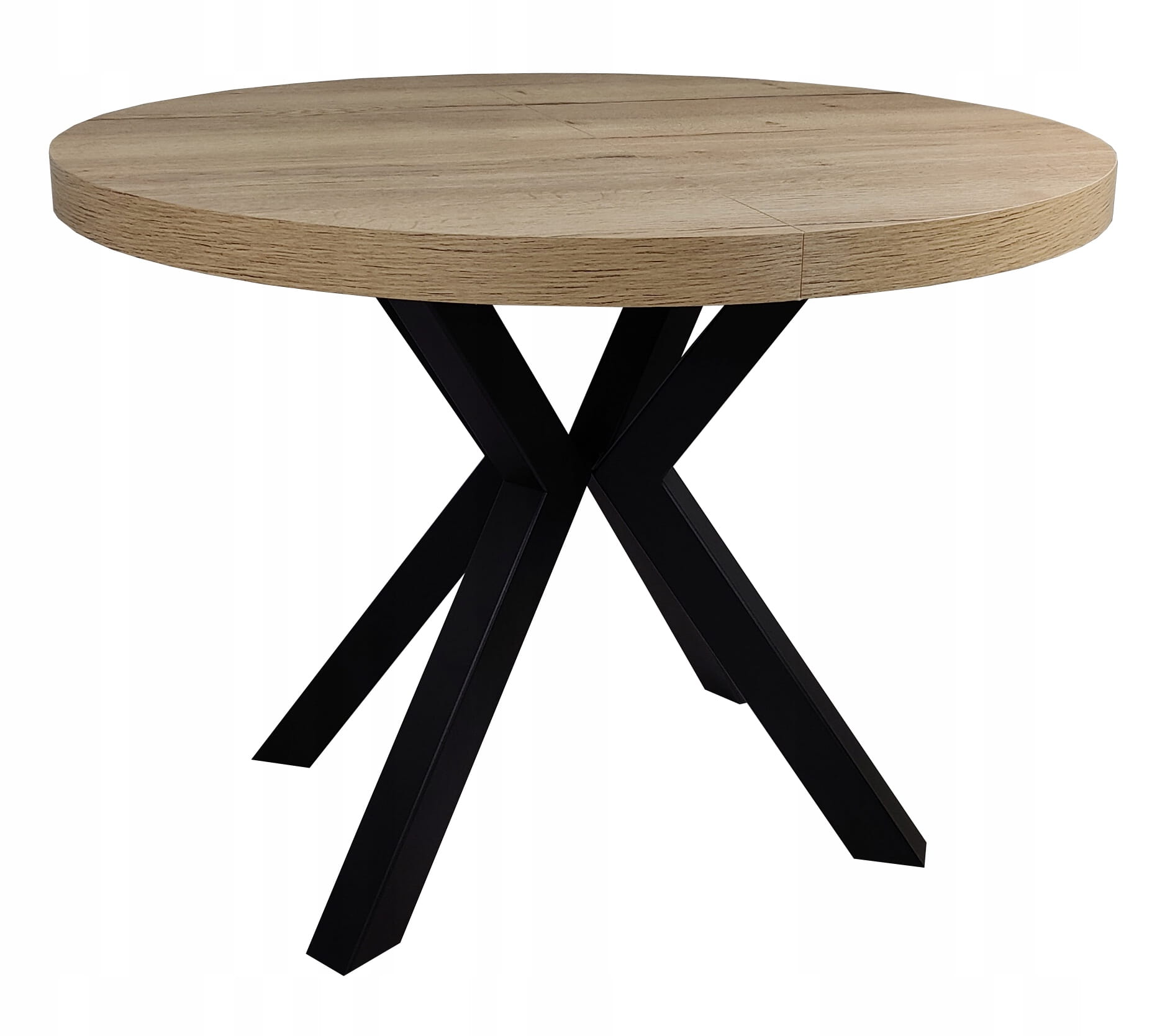 Stół okrągły rozkładany Ø 90/190 dąb halifax egger + czarne nogi metal X