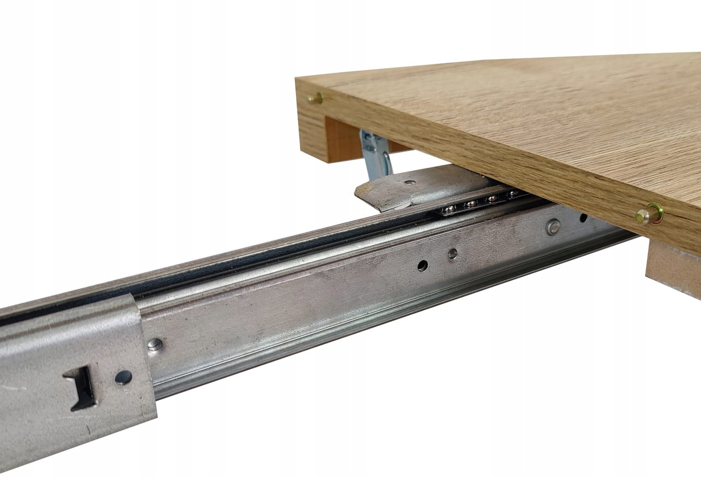 Stół rozkładany na prowadnicach łożyskowych. Stół posiada jedną lub dwie wkładki po 50 cm (w zależności od wybranego produktu)