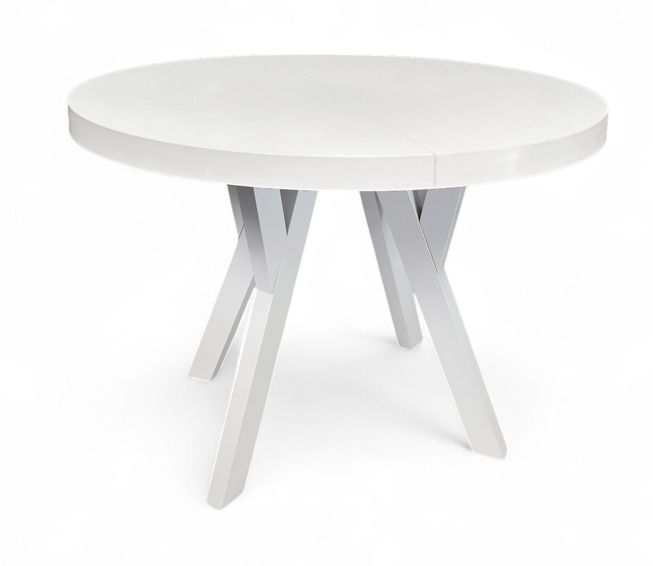 Stół okrągły rozkładany BIAŁY PÓŁMAT Ø110/210 cm + BIAŁE NOGI