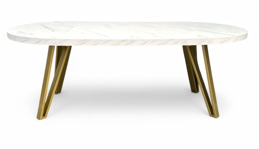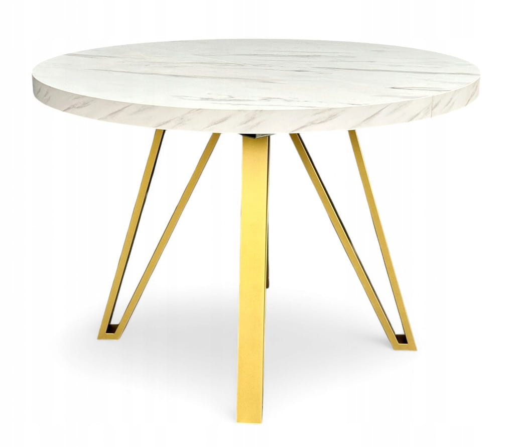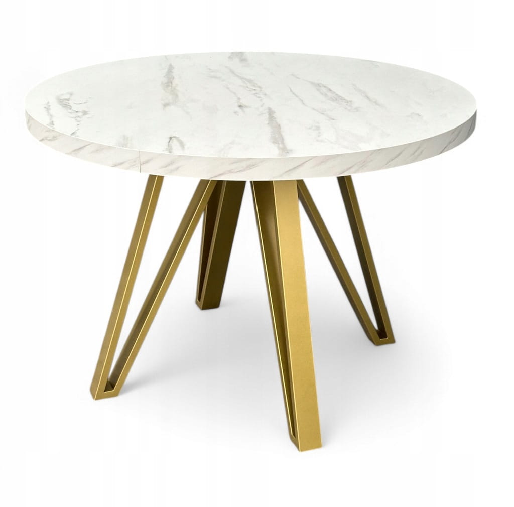 Stół okrągły rozkładany MARMUR BIAŁY Ø110/210 cm + ZŁOTE NOGI METALOWE