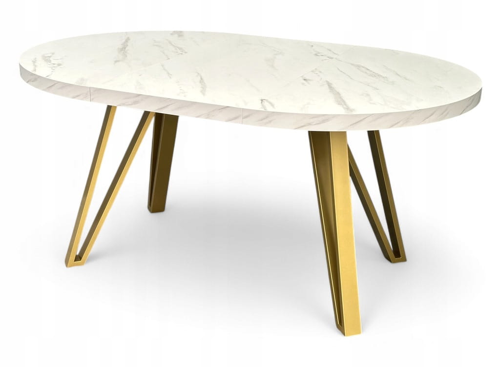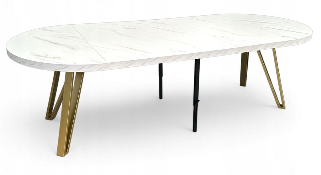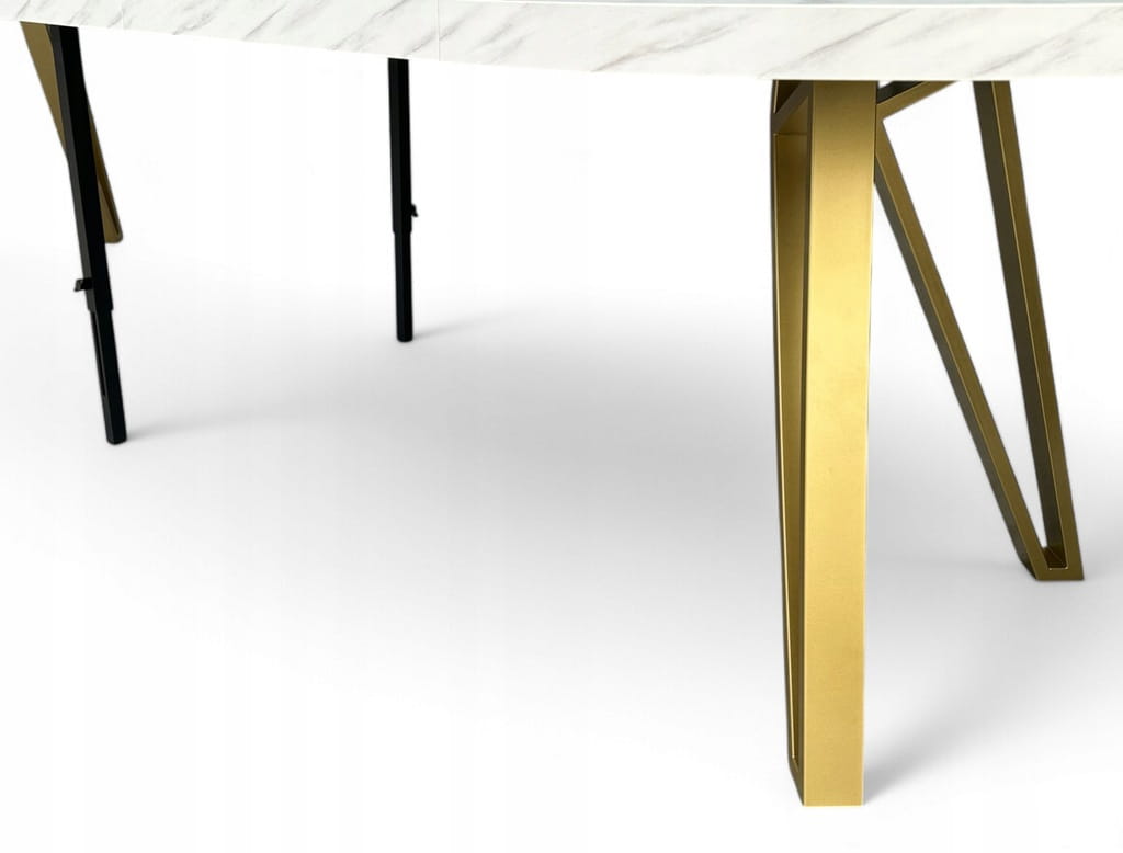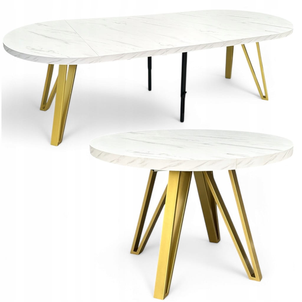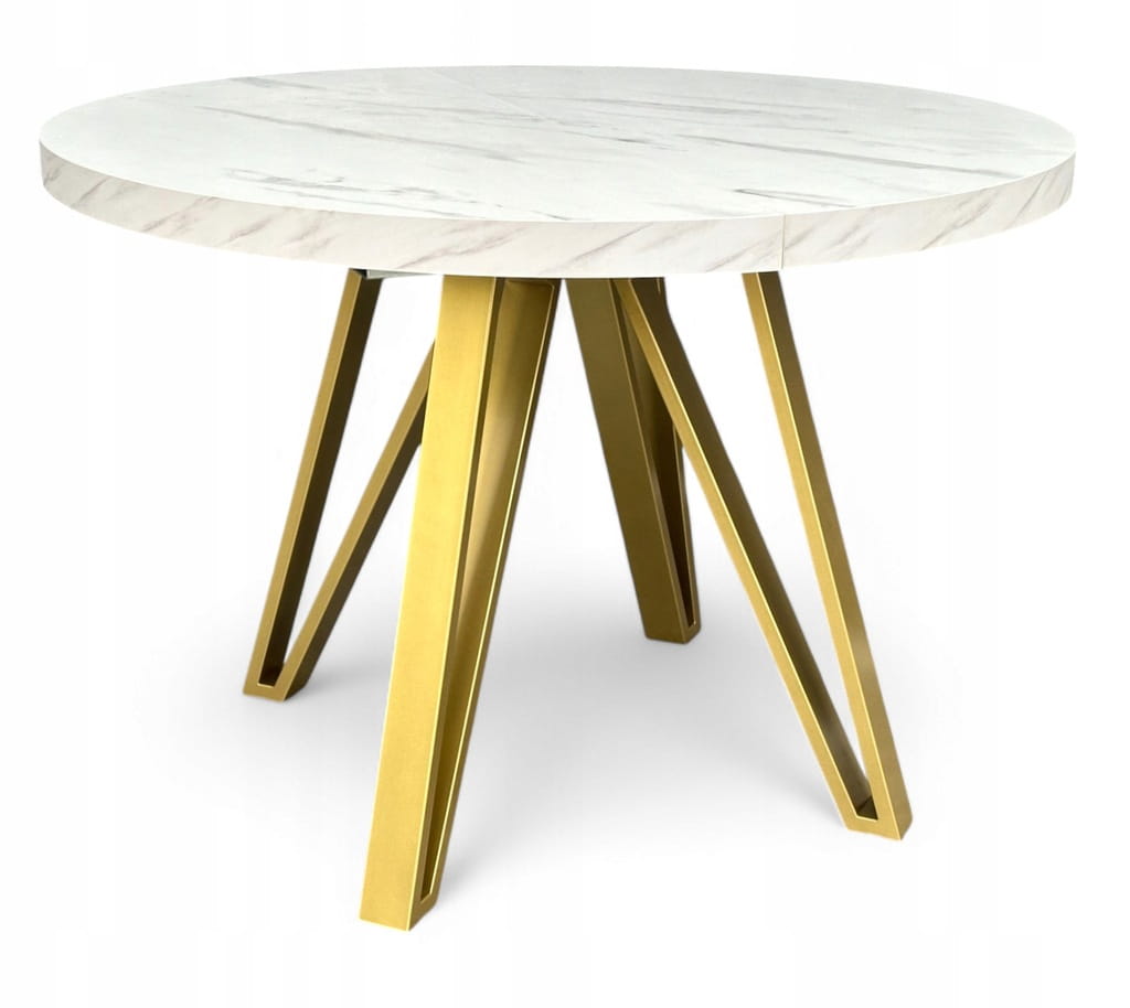 Stół okrągły rozkładany MARMUR BIAŁY Ø110/310 cm + ZŁOTE NOGI METALOWE