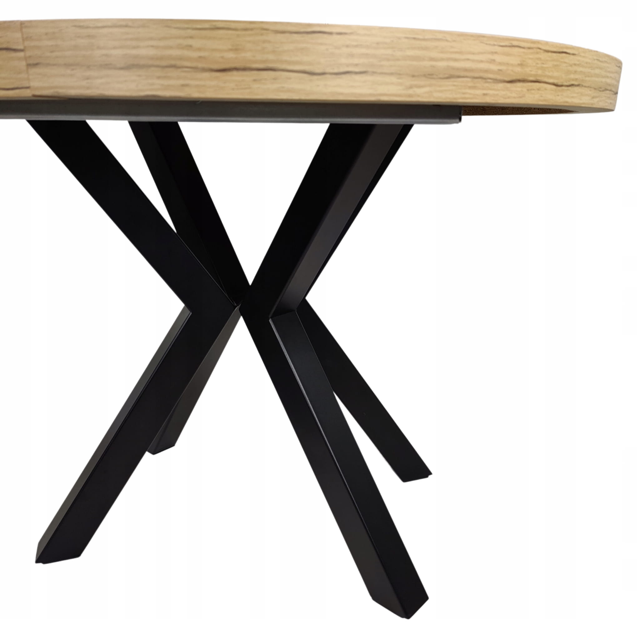 Stół okrągły rozsuwany METAL X DĄB WOTAN Ø90/190 + nogi metalowe X
