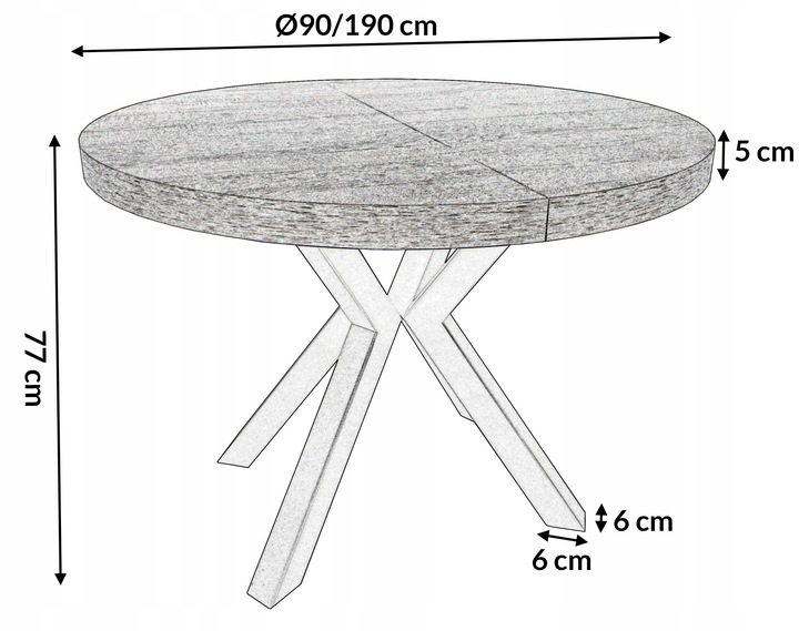 Solidny stół rozkładany Metal X Ø90/190 cm do salonu lub jadalni
