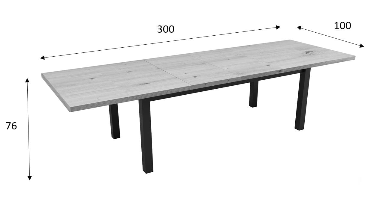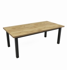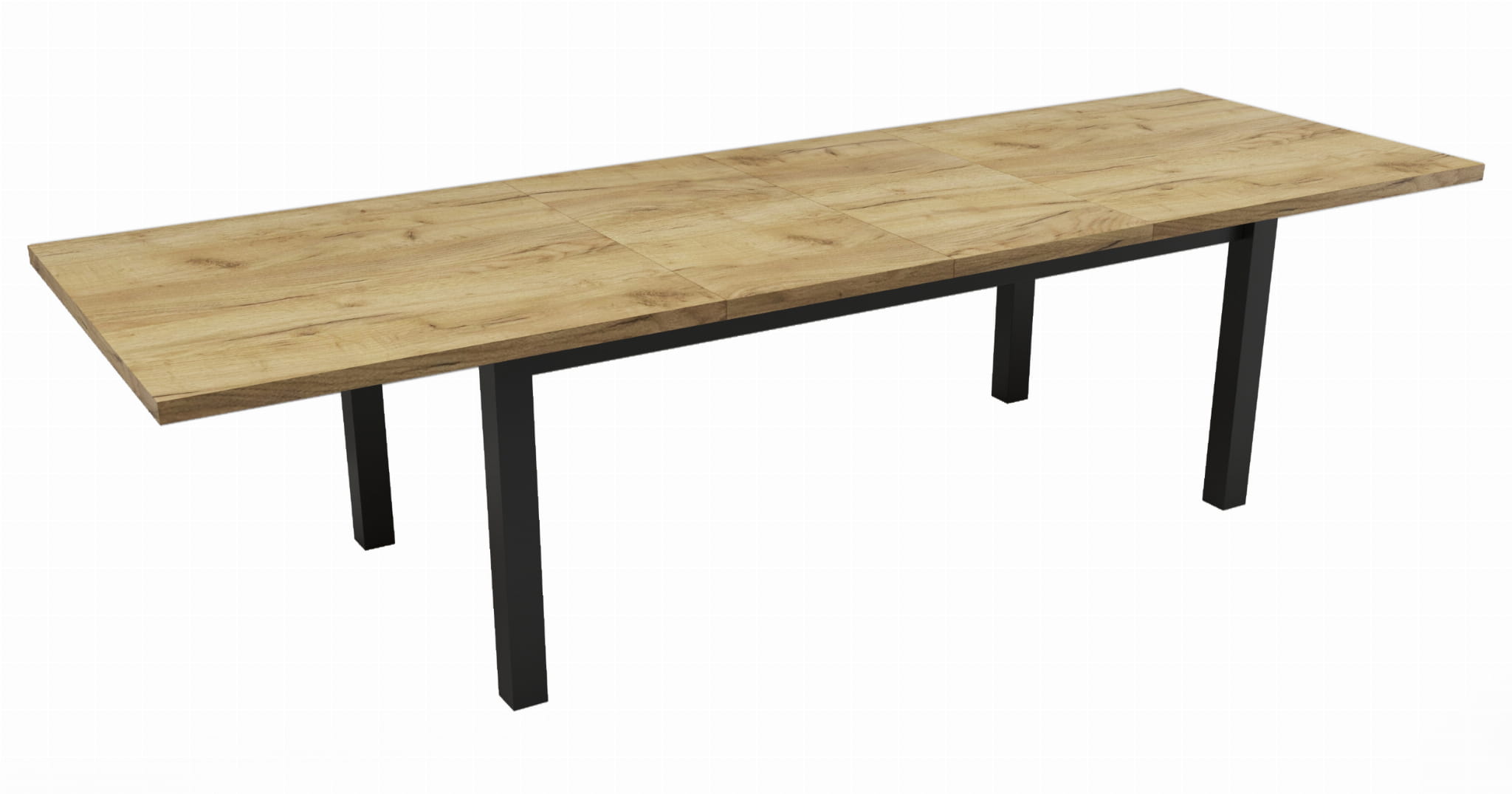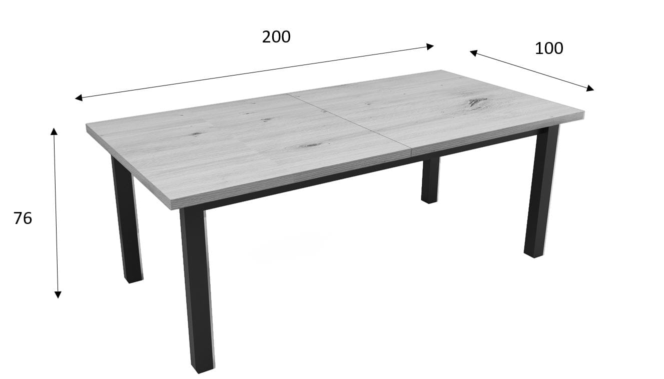 Solidny stół rozkładany o wymiarach 200x100. Rozkładany do 300cmIdealny do salonu, jadalni, biura, sali konferencyjnejKolorystyka: Dąb Craft + czarne nogi Cechy charakterystyczne: