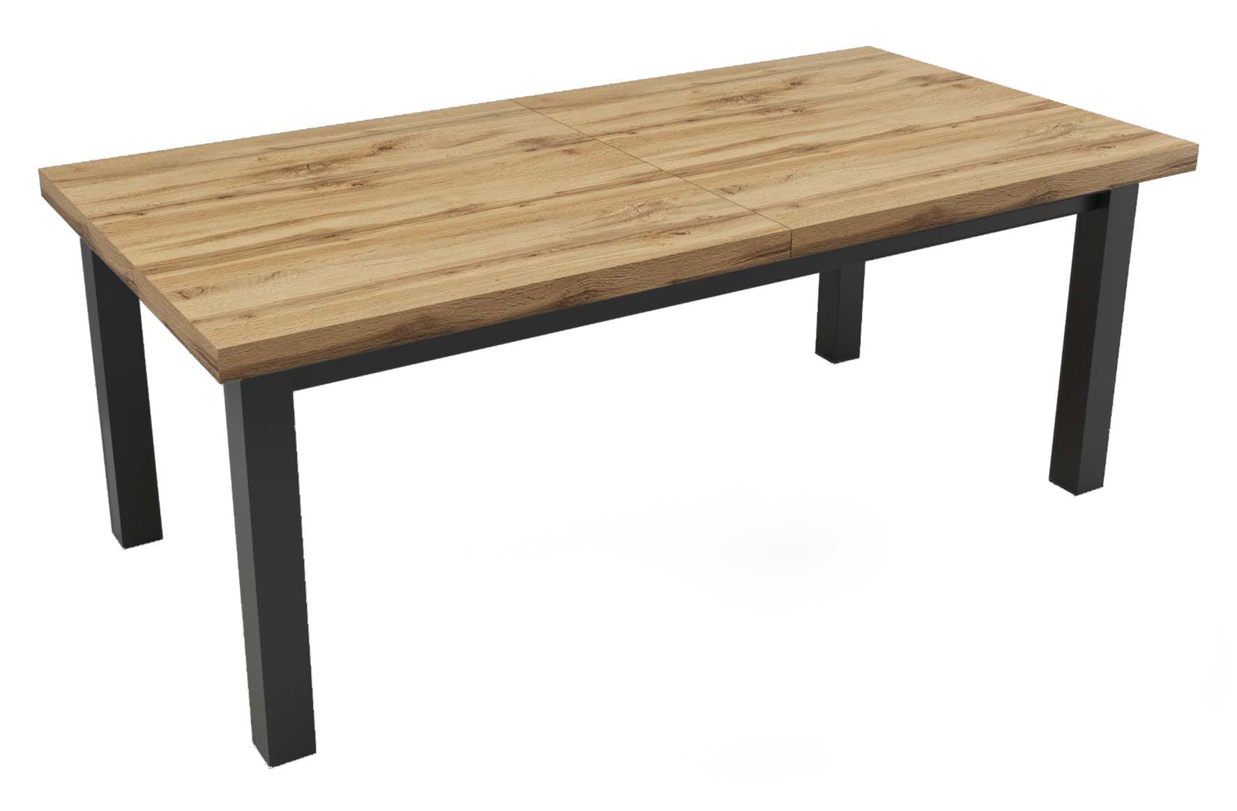 Solidny stół rozkładany o wymiarach 200x100. Rozkładany do 300cmIdealny do salonu, jadalni, biura, sali konferencyjnejKolorystyka: Dąb Wotan + czarne nogi Cechy charakterystyczne: