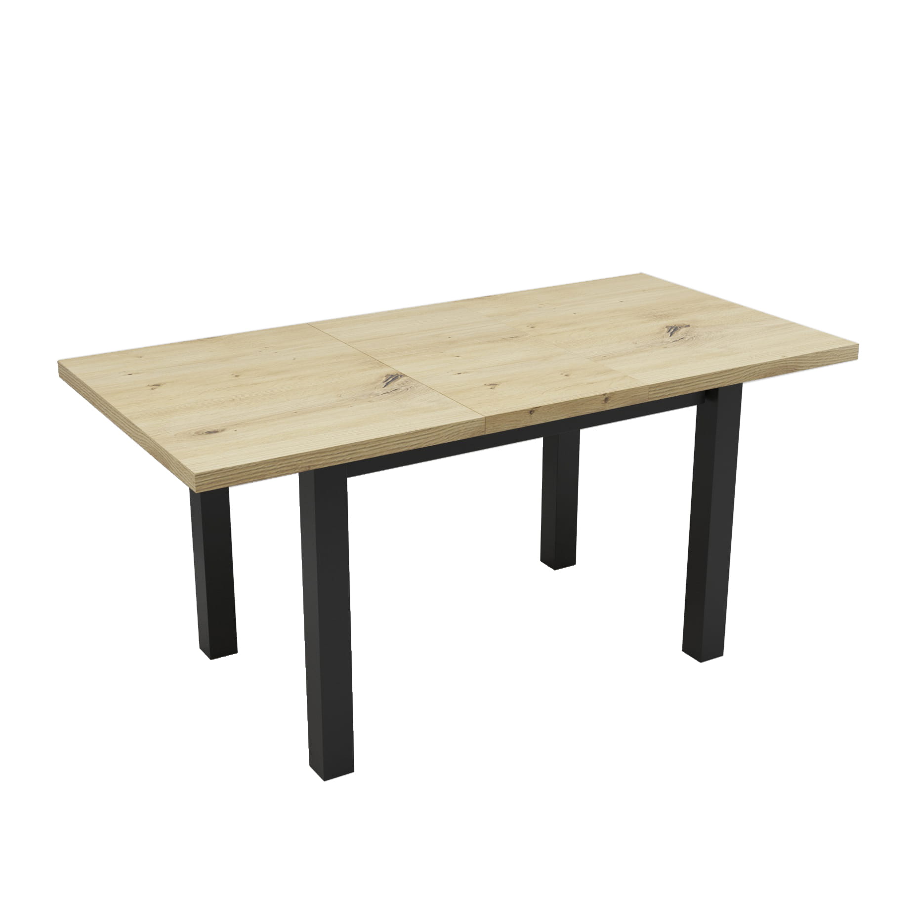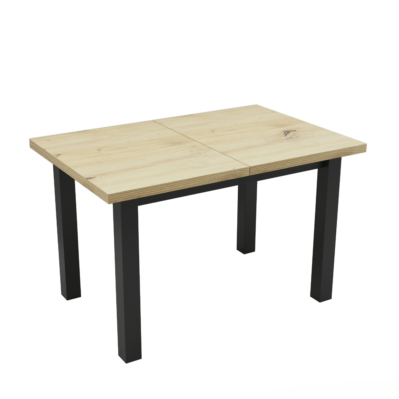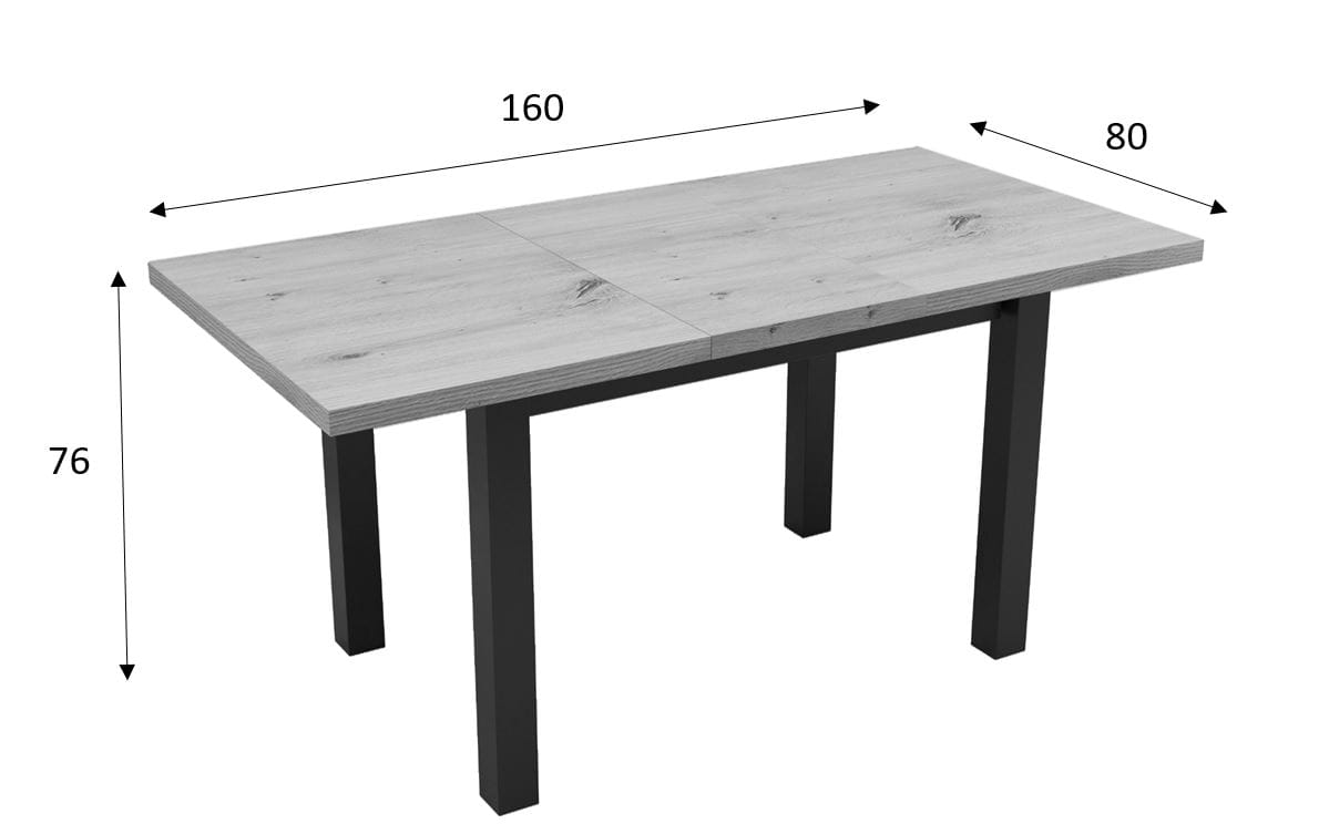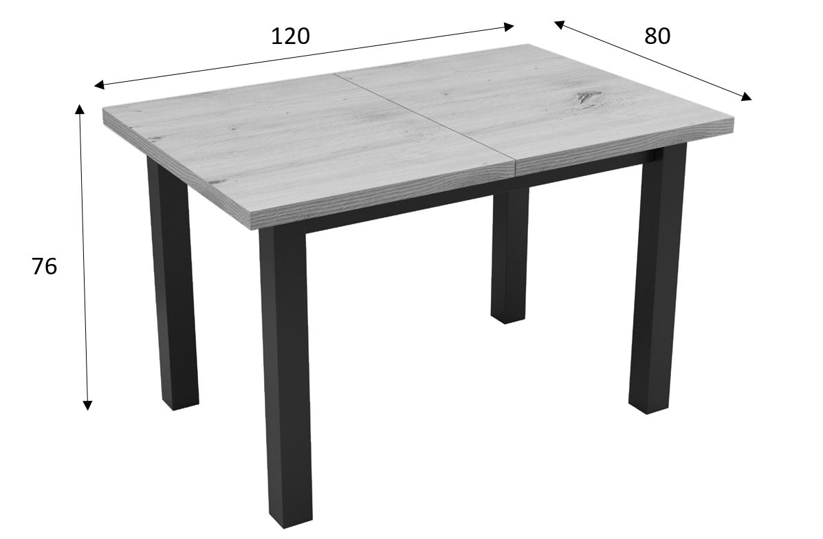 Solidny stół rozkładany o wymiarach 120x80. Rozkładany do 160cmIdealny do salonu, jadalni, biura, sali konferencyjnejKolorystyka: Dąb Artisan + czarne nogi Cechy charakterystyczne: